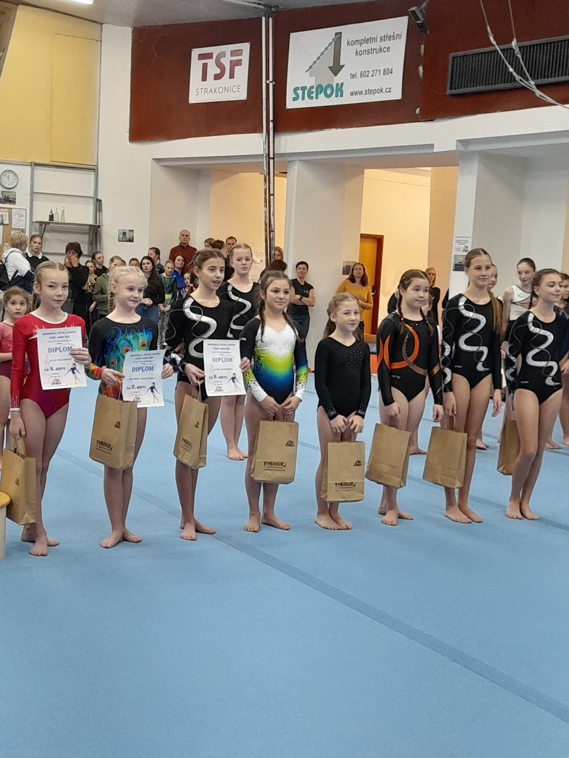 Tentokrát byla účast vimperských gymnastek stoprocentní. Všechny hodně vylepšily choreografii na prostných a byla radost je při cvičení na koberci sledovat, Na kladině výborně zacvičila nejmladší Anetka Nevaeva, která skončila na 8. místě v kateg. V. ligy. Také Martinka Bělíková a Lucka Gubaniová zvládla kladinu s jistotou a bez pádu. Odměnou jim bylo pěkné umístění v kateg. III. ligy B. Šesté místo patřilo Lucince a 8. Martince. Do první desítky se vešla i Salma Sichingerová (10.m.). V této kategorii ještě soutěžila Amálka Hášová, která se také zlepšuje závod od závodu, ale zatím to stačilo „pouze“ na 11. pozici. V kategorii III. ligy A byly nejvyrovnanější výkony všech závodnic. O umístění rozhodovaly mnohdy pouhé desetiny bodů. Tady bojovala nejstarší vimperská gymnastka Šárka Václavíková, která obsadila nakonec 9. příčku.