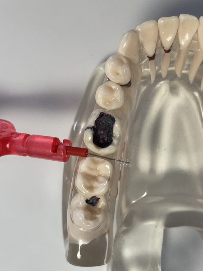 Mezizubní kartáček je důležitý pro odstranění plaku z míst, kam běžný zubní kartáček nedosáhne. Správnou velikost mezizubních kartáčků by měl určit odborník a je třeba je používat tak, aby nedošlo k jejich poškození. Vkládejte kartáček do prostoru opatrně, s mírným tlakem.