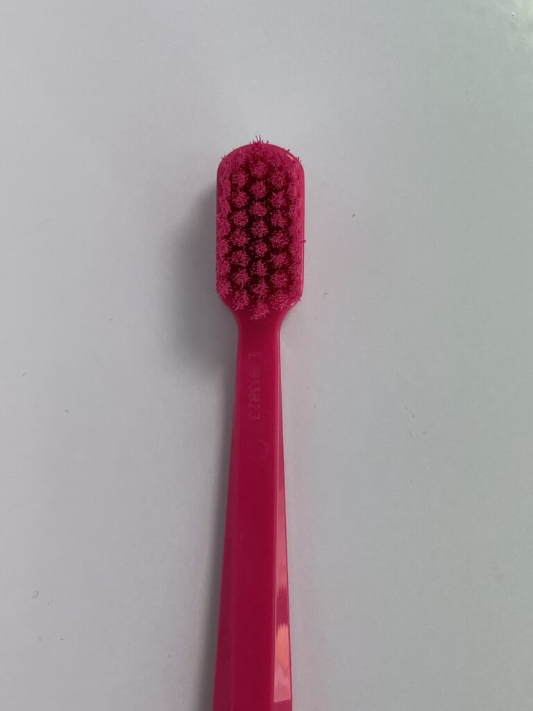 Ideální zubní kartáček by měl mít měkké, husté a rovně střižené štětiny, které jsou šetrné k dásním, ale zároveň dostatečně efektivní pro odstranění plaku. Kartáček by měl být uchopen tak, aby jeho štětiny směřovaly do dásňového žlábku. Kartáček přikládáme z poloviny na zub a z poloviny na dáseň a následně provádíme krouživý pohyb (Bassova metoda). Na měkký kartáček není potřeba tlačit a jeho tvar by měl být po celou dobu používání stejný. Pokud je váš kartáček po chvíli zničený, znamená to, že na kartáček tlačíte. Tím nejen poškozujete dáseň zubu, ale takové čištění není efektivní. Správné vyčištění kartáčkem můžete jednoduše zkontrolovat pomocí jazyka. Pokud jsou všechny plošky zubu na jazyk hladké, máte vyhráno.