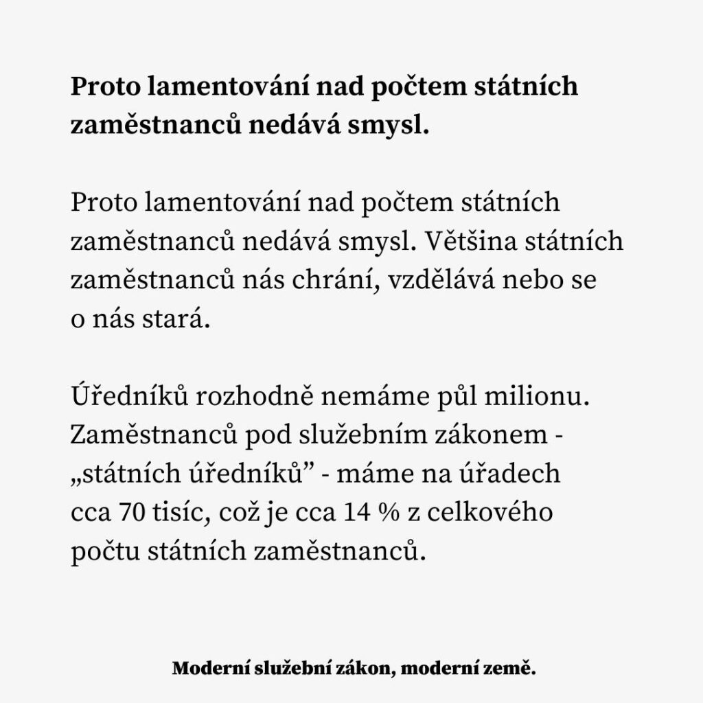 Snižování počtu úředníků problémy státní správy nevyřeší, naopak. Proto je potřeba místo rušení tabulkových míst přijít s kvalitním služebním zákonem. Takovým, který přivede do státních služeb mladé talenty i schopné profesionály, nabídne jim férové podmínky a udrží si je.
