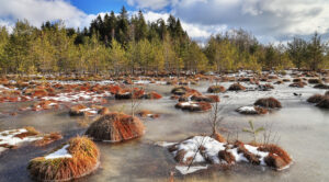 V pátek jsem prošel zamrzlé Soumarské rašeliniště a potom jsem se vydal kolem Teplé Vltavy ve Vltavském luhu do Volar. Vylitá voda z Vltavy vytvořila