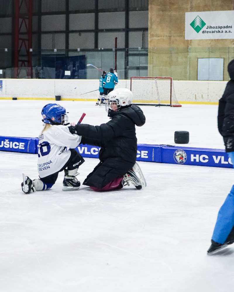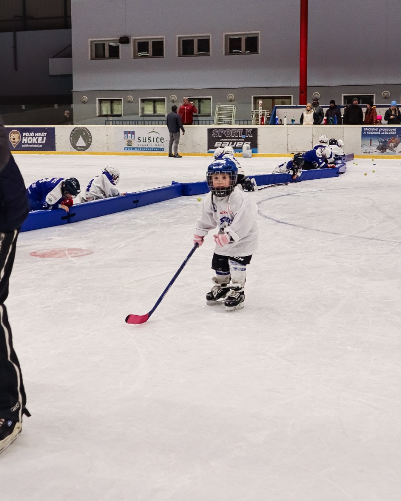 Po krátké prezentaci, na které byl také představen hokejový klub HC Vlci Sušice se všichni přesunuli do připravené šatny, kde byly pro děti, které neměly vhodné vybavení, připraveny výstroje i asistenti, kteří dětem pomáhali s oblékáním.