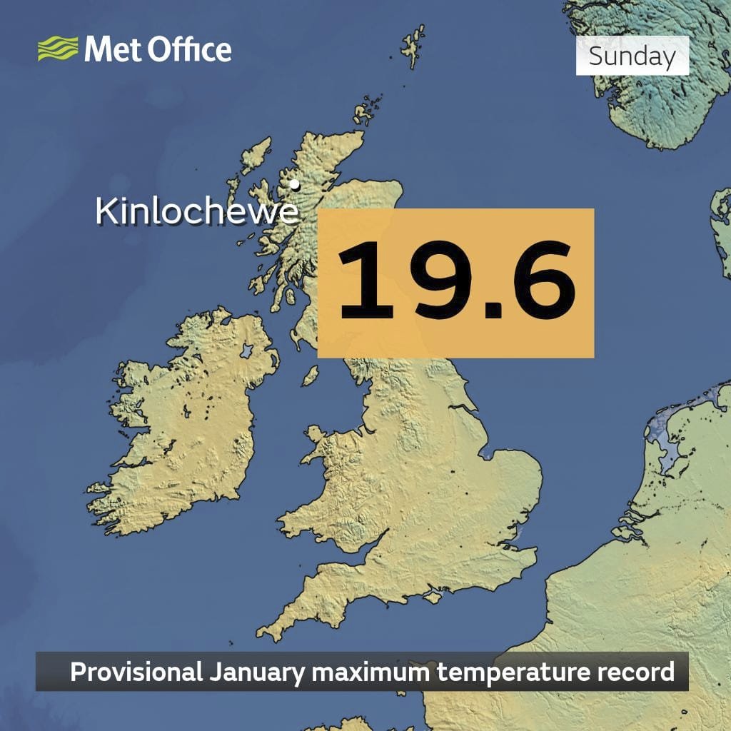 Nový lednový rekord ve Velké Británii. Ve Skotsku naměřili 19,6 °C. Tolik v této lokalitě nebývá ani v létě.