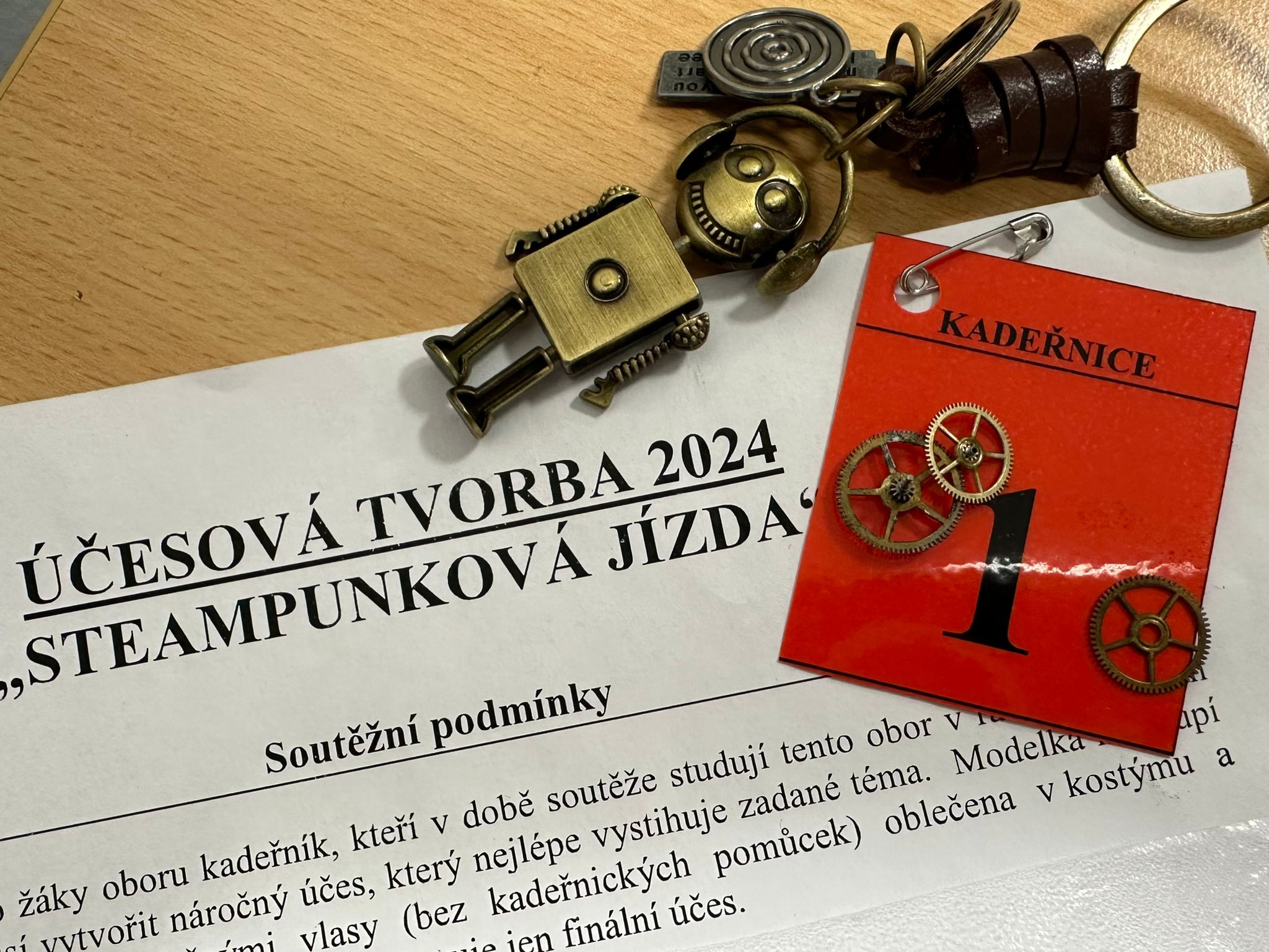Ve čtvrtek 8. února 2024 se v prostorách SOU v Lanškrouně uskutečnila kadeřnická soutěž na téma „Steampunková jízda“, které se zúčastnily i naše žákyně z oboru Kadeřník – vizážista.
