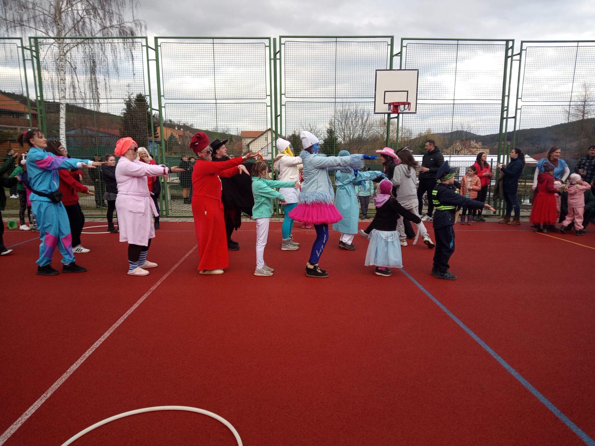 Na hřišti ve Starých Prachaticích jsme pak přivítali taneční ukázku Dance Group z DDM Prachatice a společně si zatancovali „makarenu i čokoládu“. K tomu byly pro děti připravené zábavné aktivity, v přestávkách jsme se ohřívali ve vyhřívaném stanu u čaje a koblih a také na ohni opékali špekáčky.