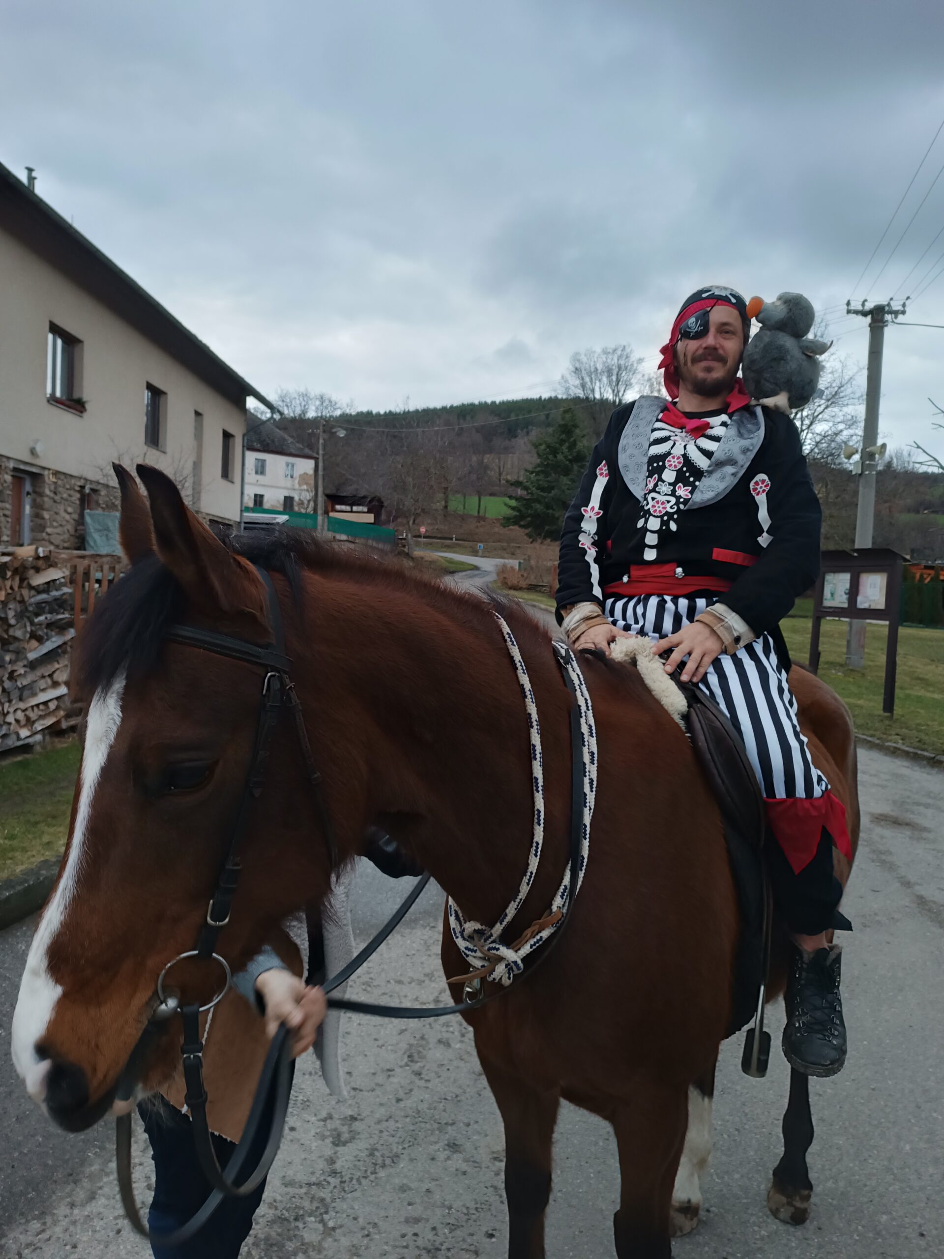 Celou akci zahájil v sobotu 17. února průvod masek, který s živým koněm a pirátskou princeznou prošel Ostrov i Staré Prachatice s občerstvovací zastávkou, na kterou nás pozval statný Obelix s krásnou letuškou a neméně krásnými pomocnicemi.