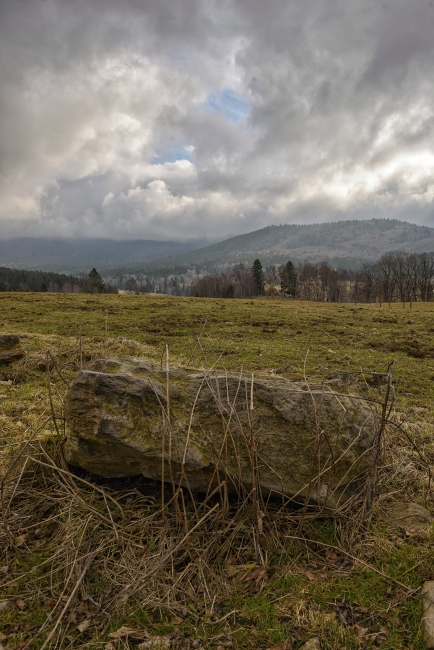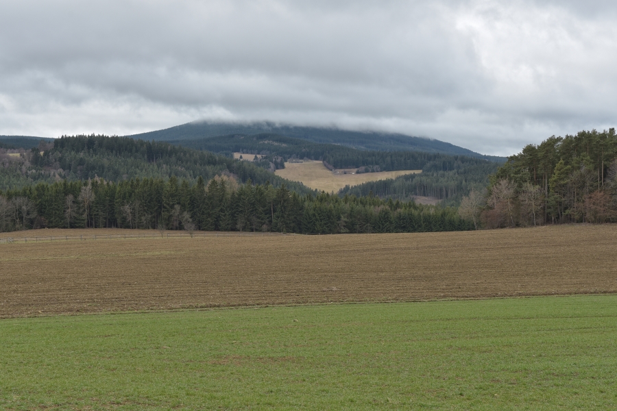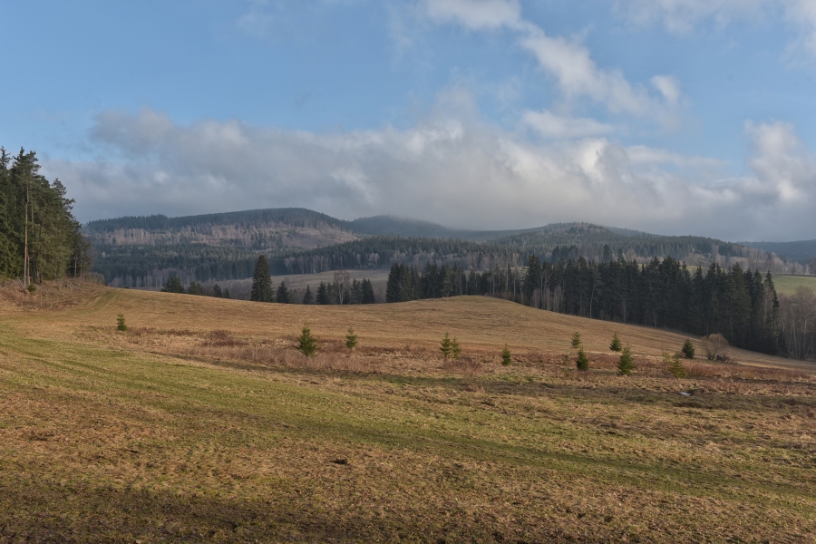 … z nichž pohled na okamžik odběhl k podobně kouzlícím Roklanům, jimž na obzoru v těsném sousedství chvíli konkuroval stín Boubína.