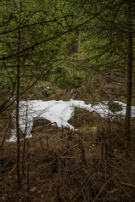 Navenek sice působí již na konci února zmiňované předběhlé jaro, ale v hloubi lesů stále ještě můžeme narazit na pozůstatky sněhové pokrývky.