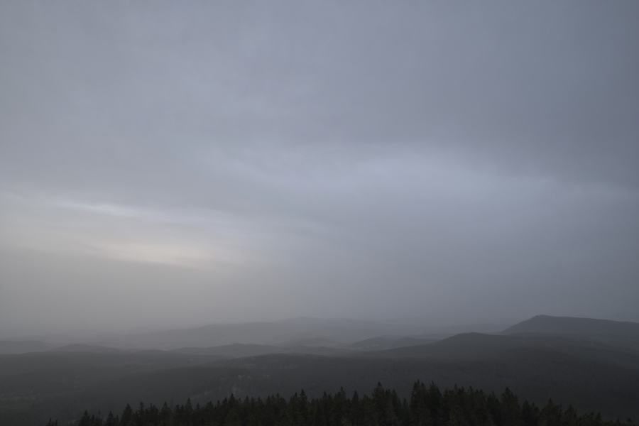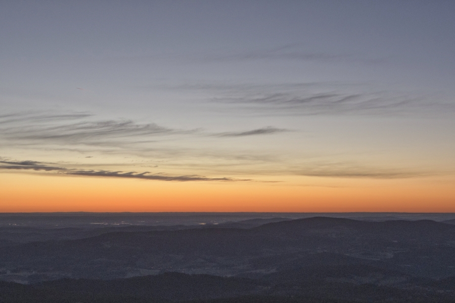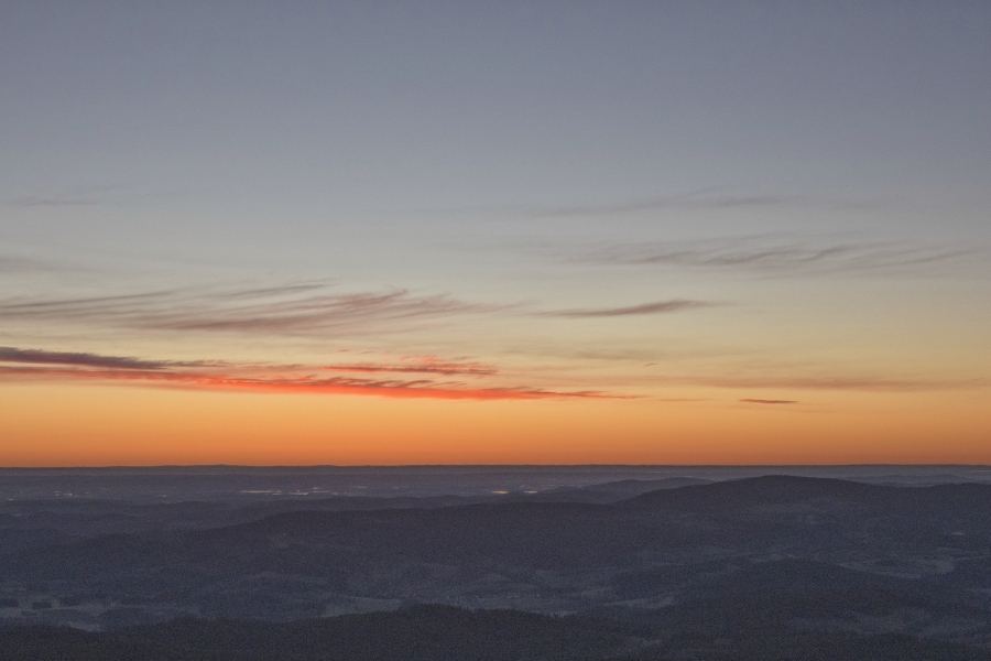 Ani sluneční východ se nedokázal opticky prosadit – zde zachycená situace prvního zřetelnějšího náznaku nastala zhruba hodinu poté.