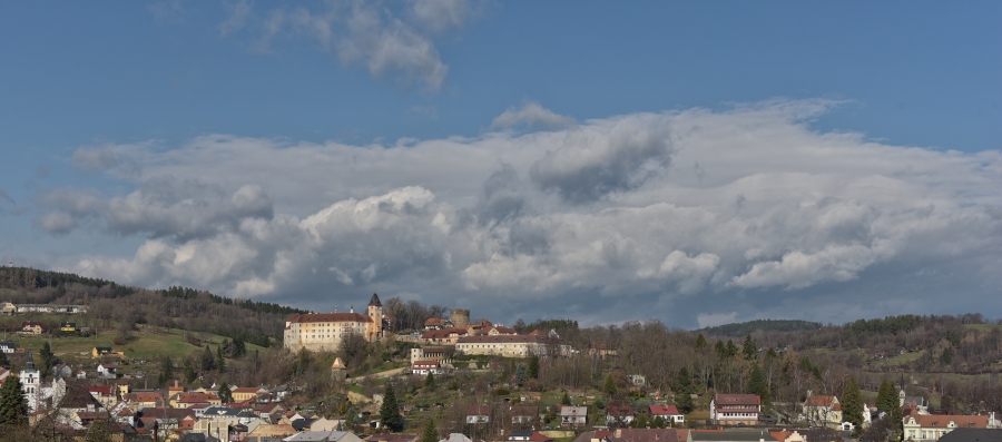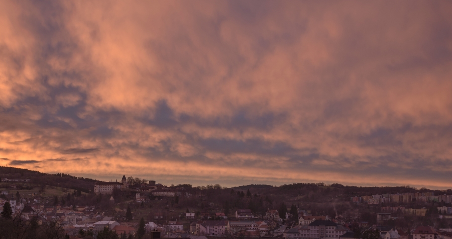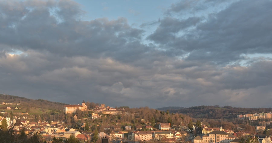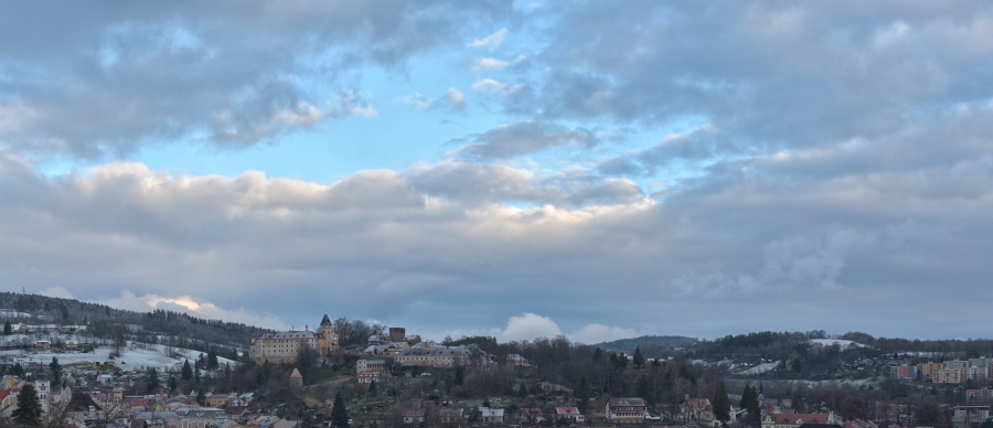 Časně ranní sluneční pohlazení vimperskému zámku sluší.