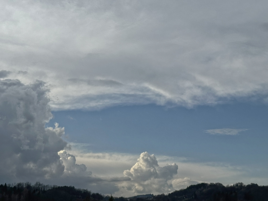 Na Velikonoce je sice meteorology slibováno výrazné oteplení, ale noc před Velkým pátkem byla každopádně mrazivá. A rozjasnila oblohu do té míry, že na ní zbyla jen útržkovitá oblačnost – ovšem pohled z boubínské rozhledny prozradil zase jednou výstavní vlny tzv. Kelvin-Helmholtzovy instability. Připomeňme si, že tento zajímavý jev s odborným názvem fluctus vzniká v okamžiku, kdy se proti sobě vzájemně odlišnou rychlostí pohybují dvě vzduchové masy rozdílných hustot. Na jejich rozhraní dochází k tzv. střihu větru, který vytvoří právě ony útvary připomínající mořské vlny, jaké se ukázaly i dnešního rána.