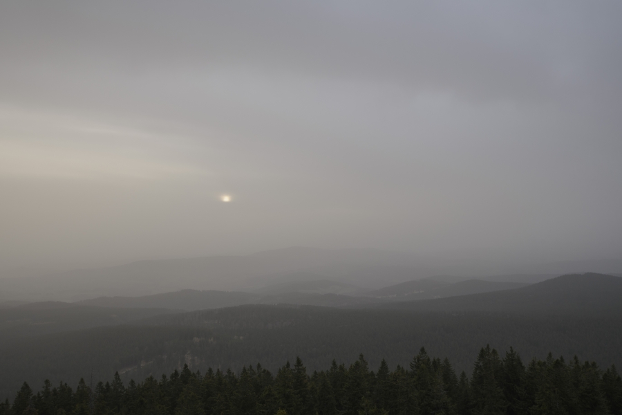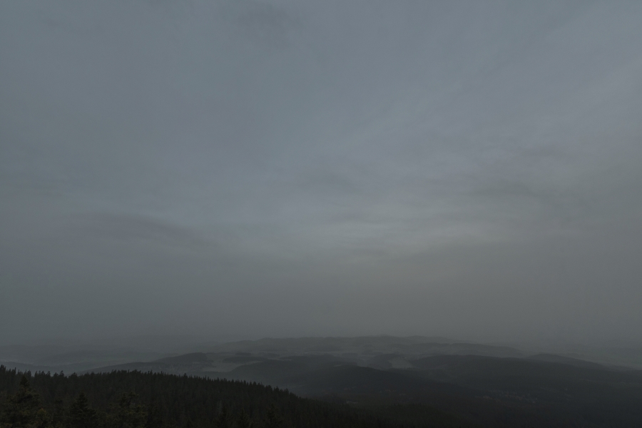 V posledních dnech se snad ve všech pádech skloňuje saharský písek či saharský prach, jehož je viditelně plná atmosféra. Nezbývalo tedy než pohlédnout na jeho působení z Boubína. Nu, časně ranní přivítání zde mělo velmi tajemný, ba chvílemi snad přímo lehce apokalyptický nádech.