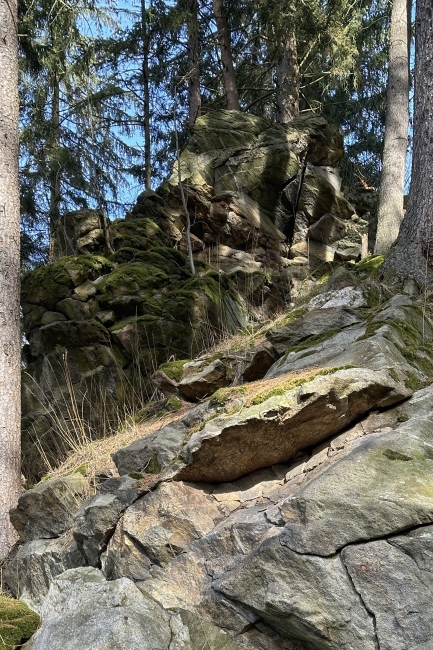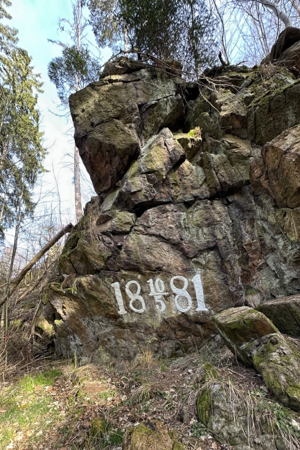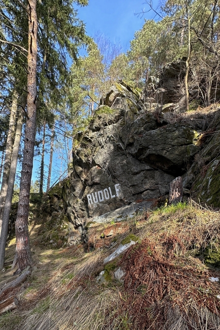 … neboť Rudolfova skála se zásluhou renovace nápisu zapálenými milovníky regionální historie prozrazuje již z dálky.