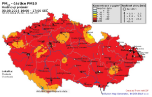 Z důvodu vysokých koncentrací prachových částic PM10 s ohledem na přechod saharského písku byla vyhlášena smogová situace v Kraji Vysočina a Jihočeském do odvolání. Večer