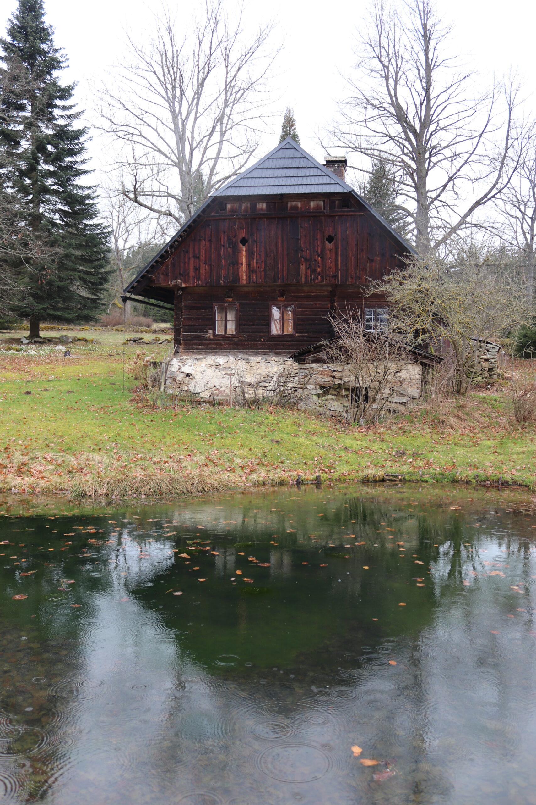 Klečím v mokré trávě a pozoruju bílou záplavu bledulí. Jak klidně tu stojí. A do svého klidu vkládají všechen svůj život. Konečky okvětních lístků si namočily ve zlaté barvě. Pokropily svojí bělobou okolí Božích muk a celou louku až k lesu, kde stojí vedle vývratu další kříž. Sedám si na lavičku pod střechu. Jsem klidný. Zámek na dveřích a zarýglovaná okna prozrazují, že uvnitř nikdo není. Odpočívám a pak mířím k ohradě, kde kvete nízký keřík lýkovce. Vstupuju do chrámu fialového obřadu, vůně vzácného kadidla opájí můj dech, stačí, že se ke keříku shýbnu ve snaze zavázat si opět své neposlušné tkaničky. A pak ještě jednou obcházím chalupu. Stojím na břehu malého rybníčku, ve kterém se opět objevují kruhy po kapkách sílícího deště.