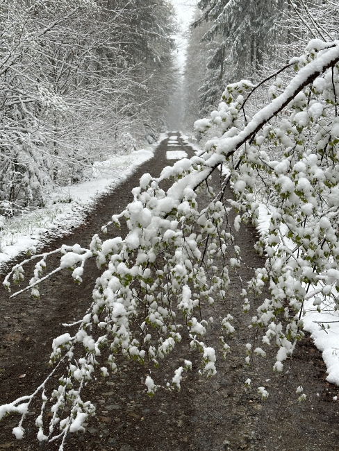 Tak nám apríl konečně vystrčil drápky – po zcela nepatřičné exkurzi do letního počasí výrazně ochladil ovzduší a do ranního deště přimíchal také sněhové vločky, z nichž dokázal ve vyšších nežli vimperských polohách stvořit i souvislou pokrývku, tedy záležitost po nedávných vedrech skutečně snad i šokující.