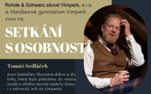Rohde & Schwarz závod Vimperk, s.r.o. a vimperské gymnázium zvou na Setkání s osobností. Tomáš Sedláček, autor bestselleru Ekonomie dobra a zla, knihy, která byla