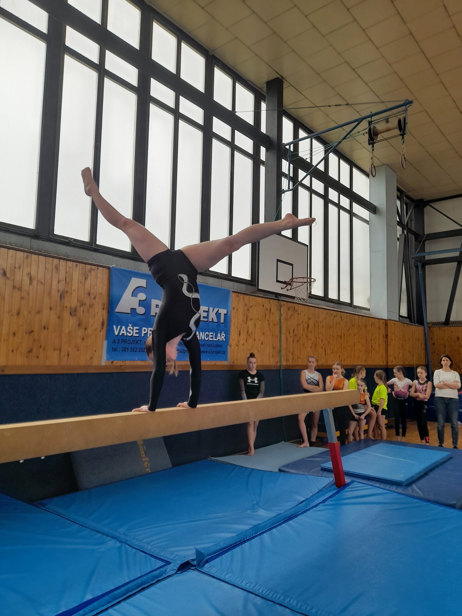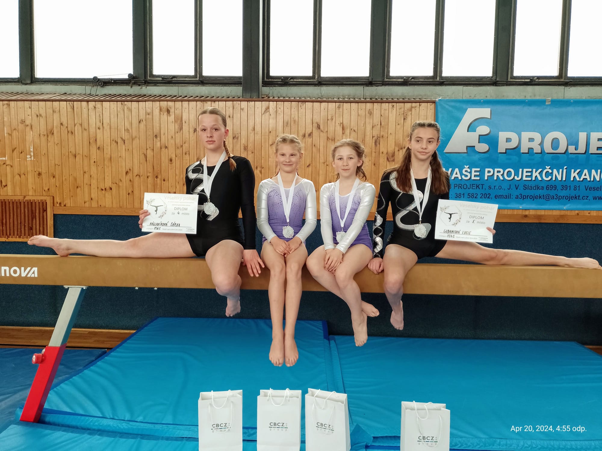 Starší děvčata na všech čtyřech nářadích zacvičila téměř bez chyb a odměnou jim bylo výborné konečné umístění. Šárka Václavíková skončila těsně pod bednou na 4. pozici v kateg. VSC6. Lucie Gubaniová získala ve své kategorii VSC4 dokonce nejvyšší známku za přeskok přemetem přes stůl a přebírala diplom za krásné 5. místo. Ve stejné kategorii s Lucinkou závodila ještě Martinka Bělíková (17.) a Natálka Lachová (19.). Natálka dokázala, že je velká bojovnice a jen tak jí něco nezlomí. Na prvním nářadí – kladině ztratila z důvodu pádů hned 4 body. Někdo by to vzdal, ale Natálka odhodlaně bojovala dál. Ostatní sestavy se jí moc povedly a dokonce poprvé skočila i přemet přes stůl. Také na sestavy cvičené Martinkou bylo pěkné podívání. Má pěknou choreografii na kladině i na prosných. Sestavu s hudebním doprovodem si užívala stejně jako diváci a rozhodčí. A nejednou, těsně před koncem, zůstala bezradně stát. I to se stane, „okno“, to známe také všichni. Martinka byla v tu chvíli moc roztomilá. Rychle se vzpamatovala a sestavu zdárně dokončila. Také za to sklidila velký potlesk, který jí vynahradil bodovou ztrátu.