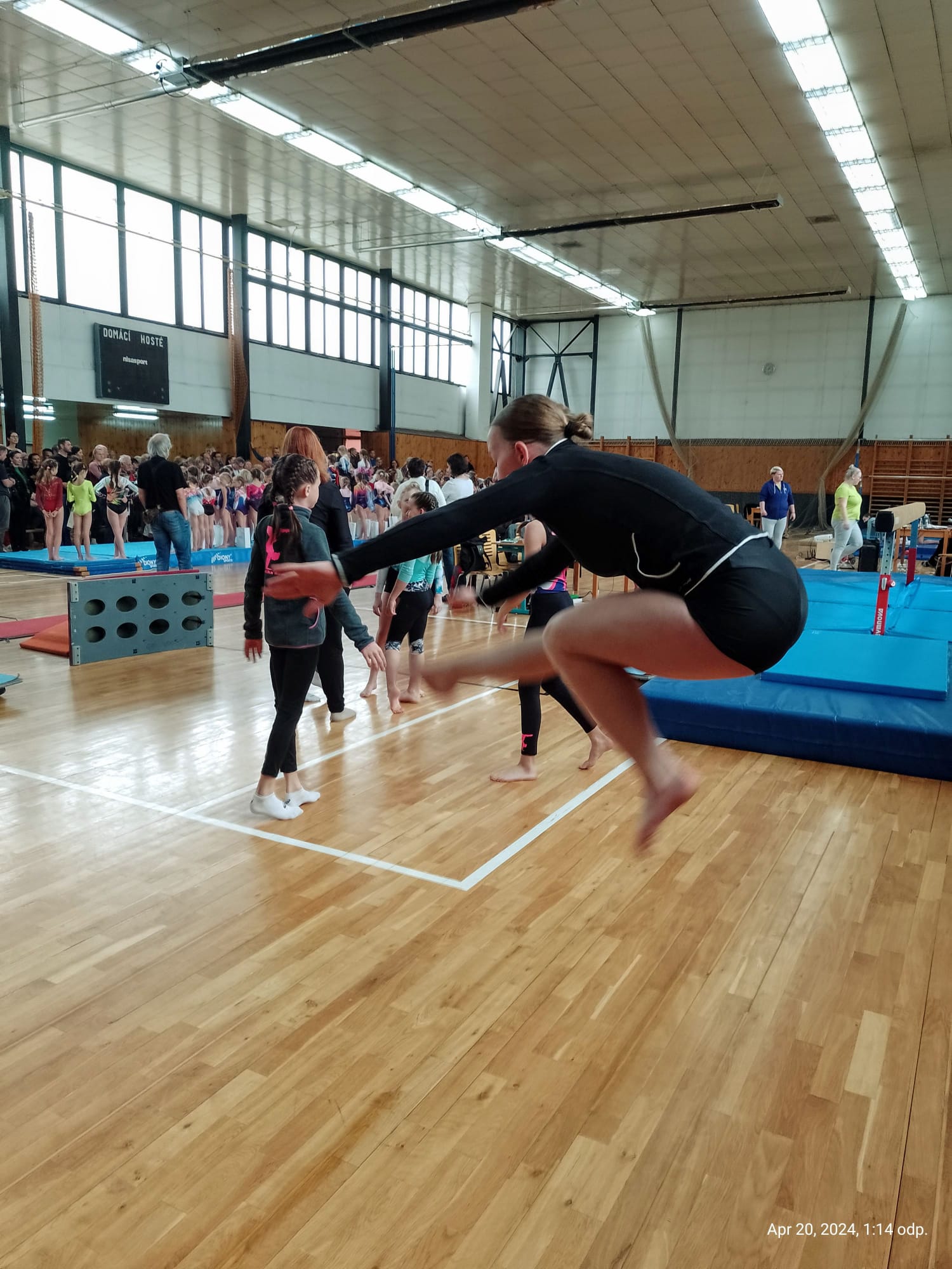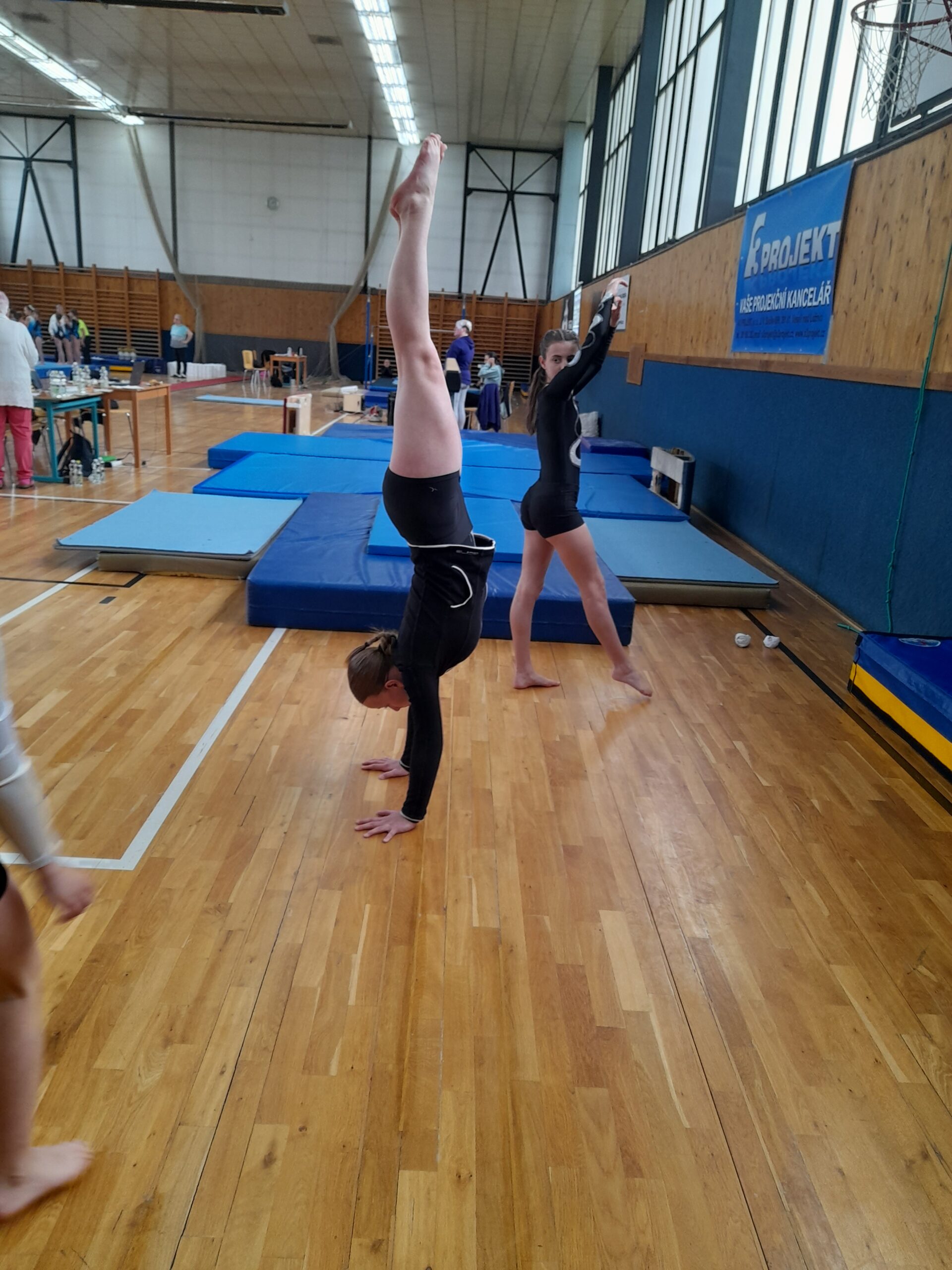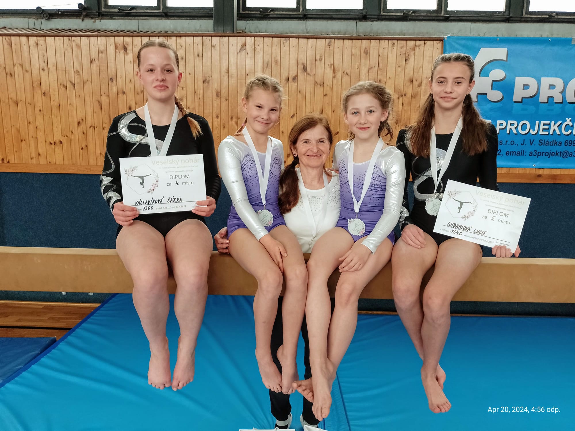 Starší děvčata na všech čtyřech nářadích zacvičila téměř bez chyb a odměnou jim bylo výborné konečné umístění. Šárka Václavíková skončila těsně pod bednou na 4. pozici v kateg. VSC6. Lucie Gubaniová získala ve své kategorii VSC4 dokonce nejvyšší známku za přeskok přemetem přes stůl a přebírala diplom za krásné 5. místo. Ve stejné kategorii s Lucinkou závodila ještě Martinka Bělíková (17.) a Natálka Lachová (19.). Natálka dokázala, že je velká bojovnice a jen tak jí něco nezlomí. Na prvním nářadí – kladině ztratila z důvodu pádů hned 4 body. Někdo by to vzdal, ale Natálka odhodlaně bojovala dál. Ostatní sestavy se jí moc povedly a dokonce poprvé skočila i přemet přes stůl. Také na sestavy cvičené Martinkou bylo pěkné podívání. Má pěknou choreografii na kladině i na prosných. Sestavu s hudebním doprovodem si užívala stejně jako diváci a rozhodčí. A nejednou, těsně před koncem, zůstala bezradně stát. I to se stane, „okno“, to známe také všichni. Martinka byla v tu chvíli moc roztomilá. Rychle se vzpamatovala a sestavu zdárně dokončila. Také za to sklidila velký potlesk, který jí vynahradil bodovou ztrátu.