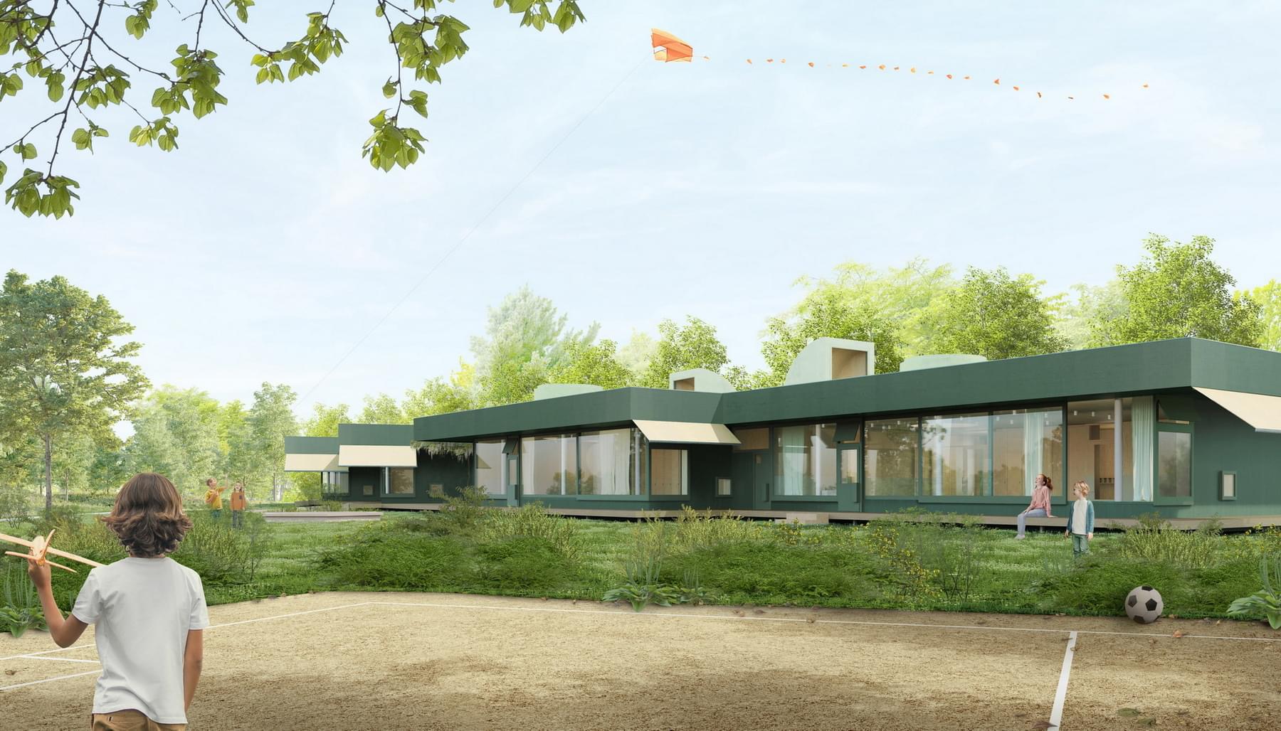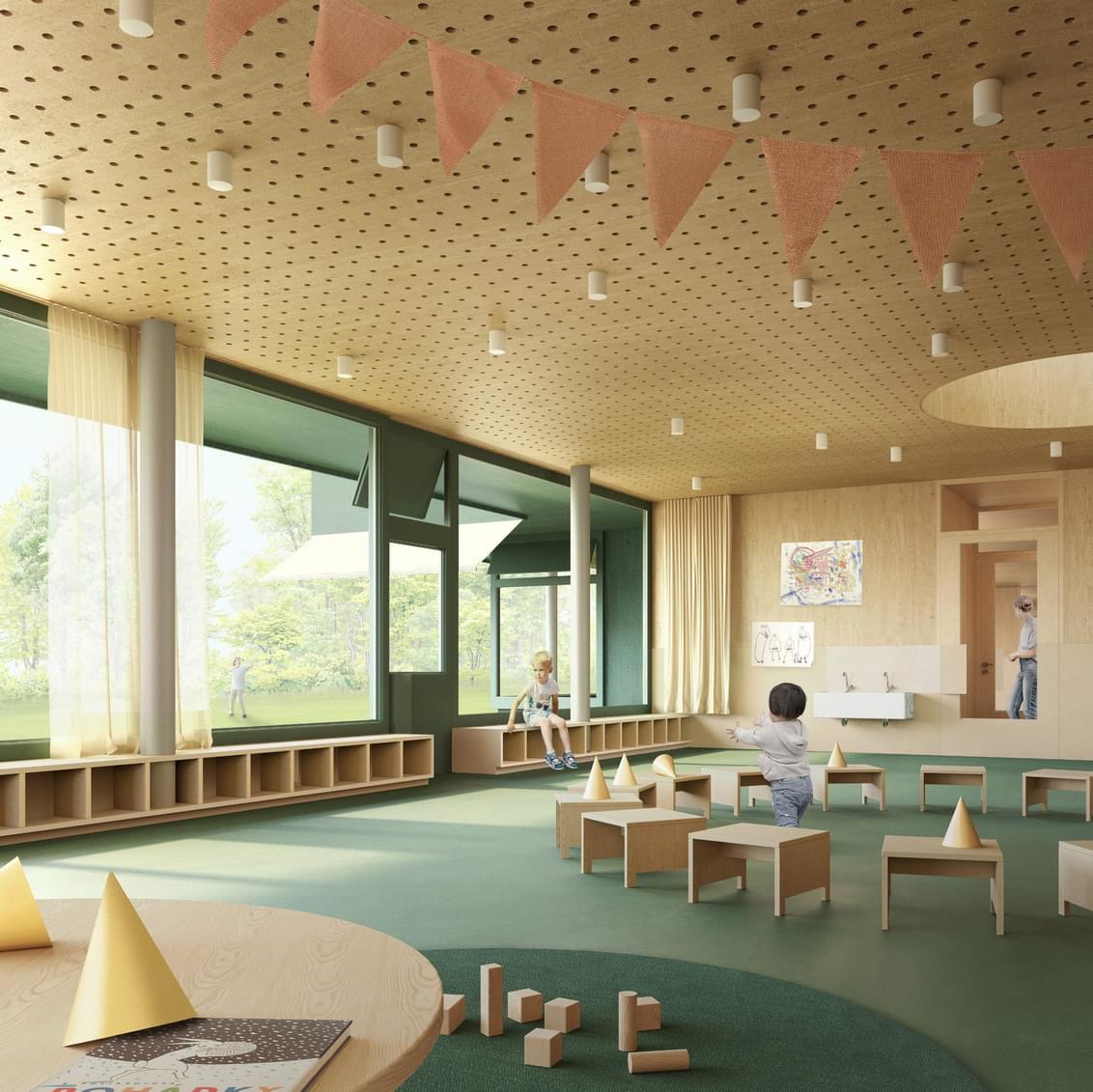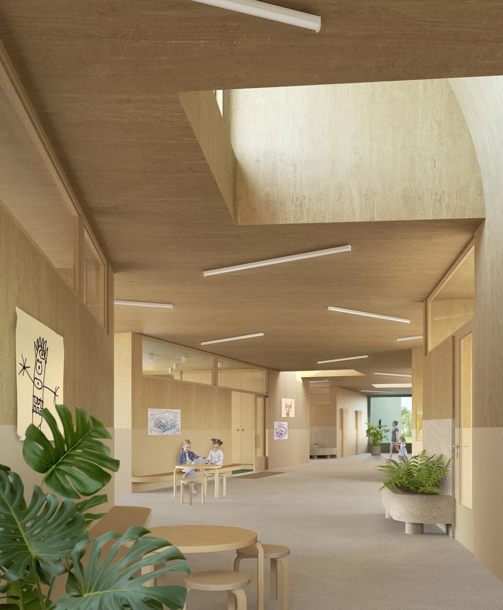V architektonické soutěži na novou mateřskou školku zvítězil v konkurenci 70 účastníků návrh od švýcarského ateliéru Amont. Jeho autorem je architekt Logan Amont.