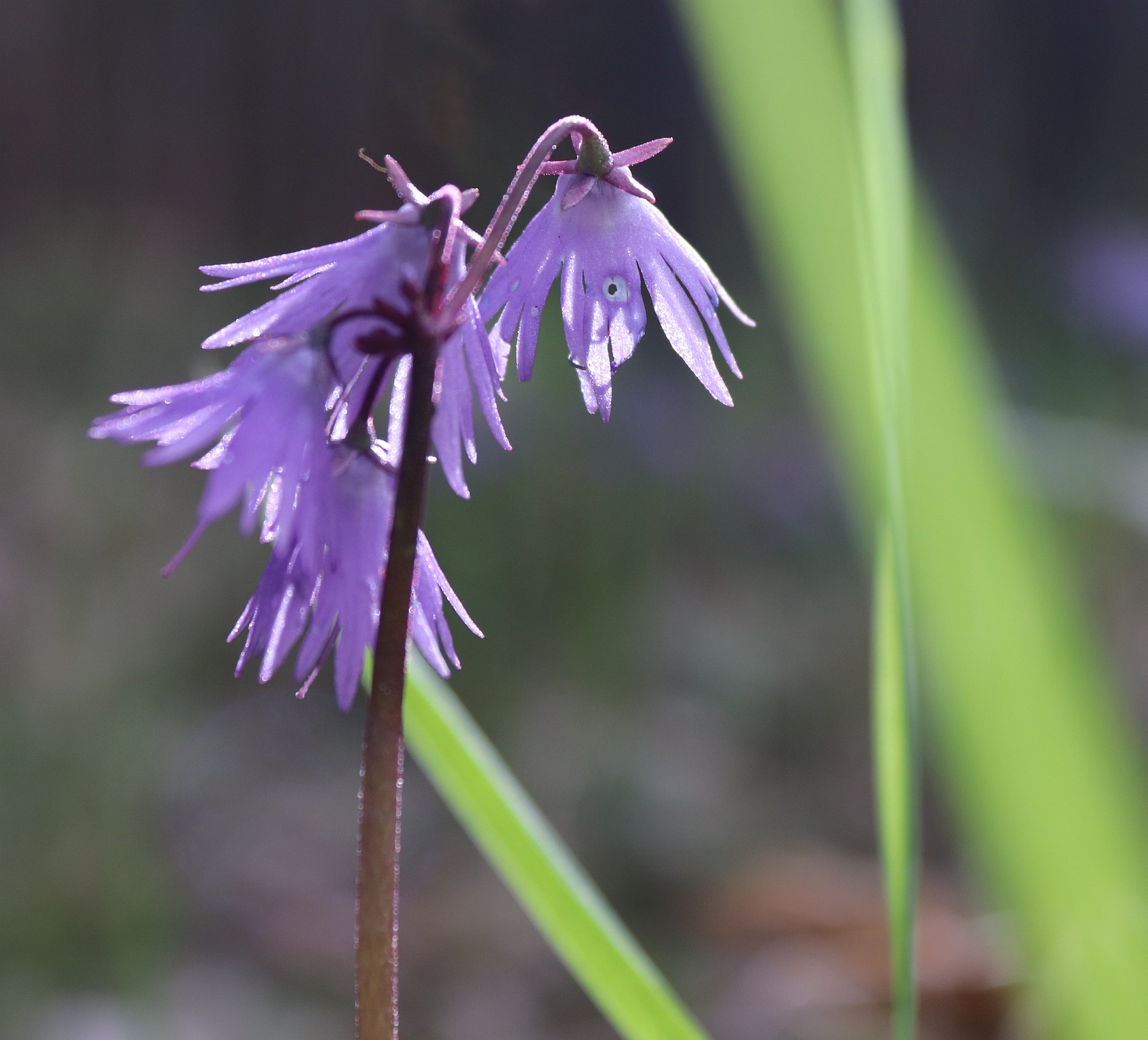 Při sjezdu z Kramat mě překvapuje modrý přísvit stinných květin. Je zrovna čas dřípatek, tak zastavuju, kolo pokládám mezi krajnici a příkop a lehám si na břicho, abych pořídil pár fotek. Hledám roztřepené šaty květů, jako bych chtěl nahlédnout ženě pod sukničku, pátrám po modři prozářené sluncem, i do příšeří lesa totiž vnikají sporé paprsky a lákají snít pod něžnými paraplíčky. Tu zastavuje auto. Řidič zařadí zpátečku a couvá až ke mně. Ptá se mě, zda je vše v pořádku, zda jsem nespadl nebo jestli se mi neudělalo slabo. „Ne, jen tu fotím dřípatky,“ uklidňuju řidiče. Je to starší chlap, tak mu děkuju, že zastavil, to přece v dnešní uspěchané době není nic samozřejmého.