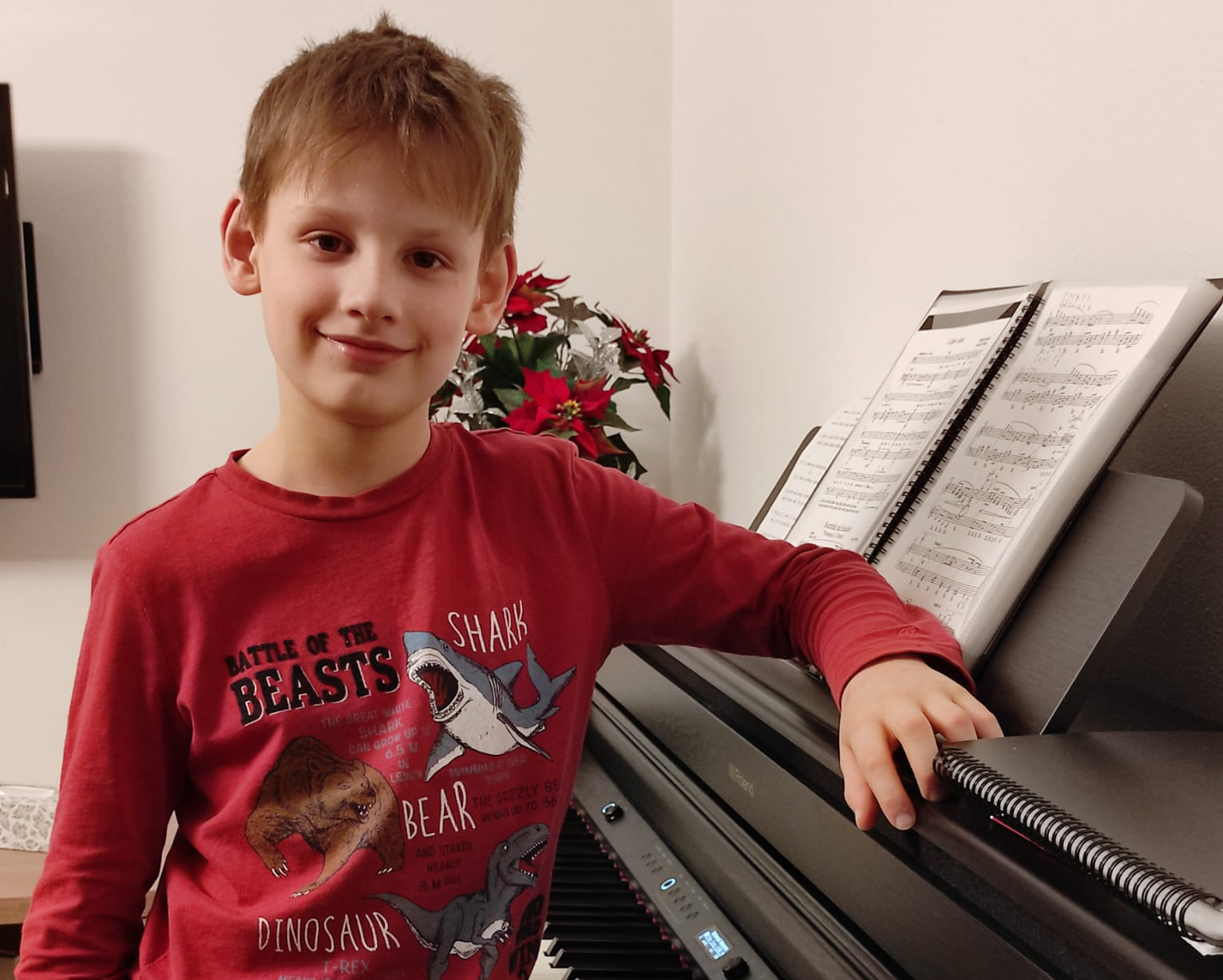 Robin : Rád hraju Bacha, třeba Nocturno nebo Preludium. Teď se učím Mozarta, ten mi přijde trochu těžší. Když mám čas, zkouším i populární hudbu.