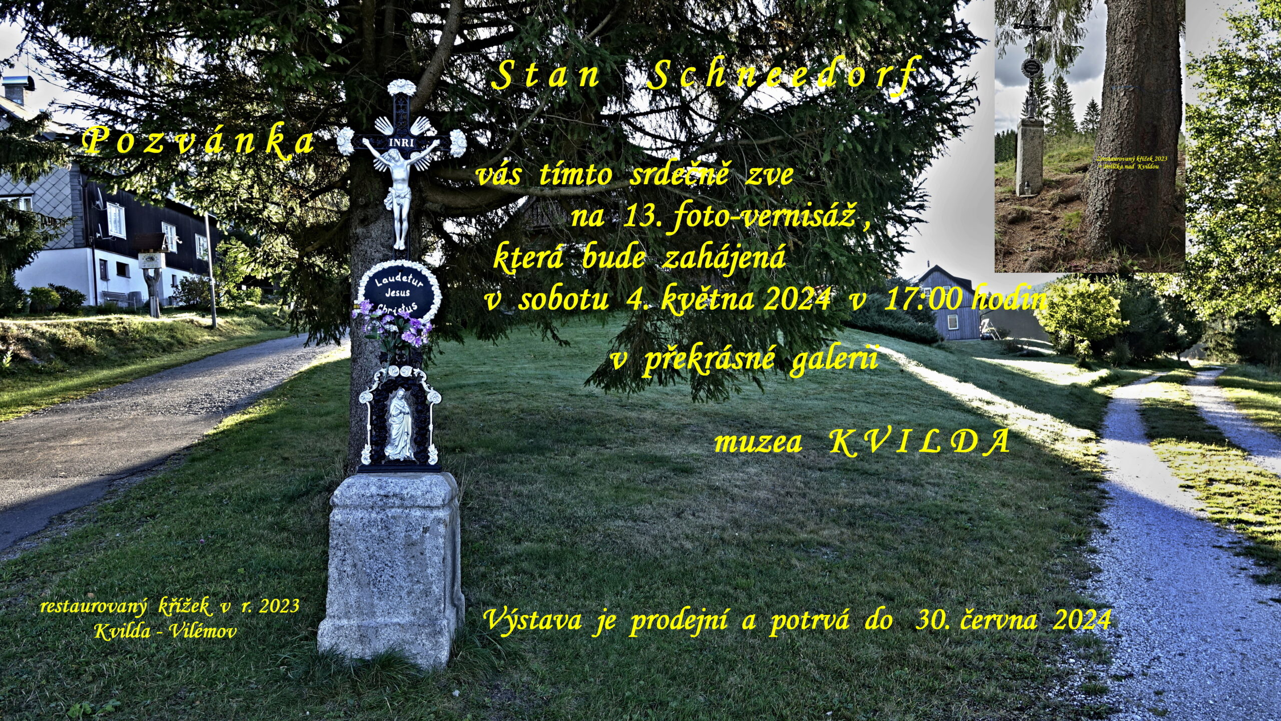 Pozvánka na vernisáž obsahující 113 pohledů do nitra Šumavy.