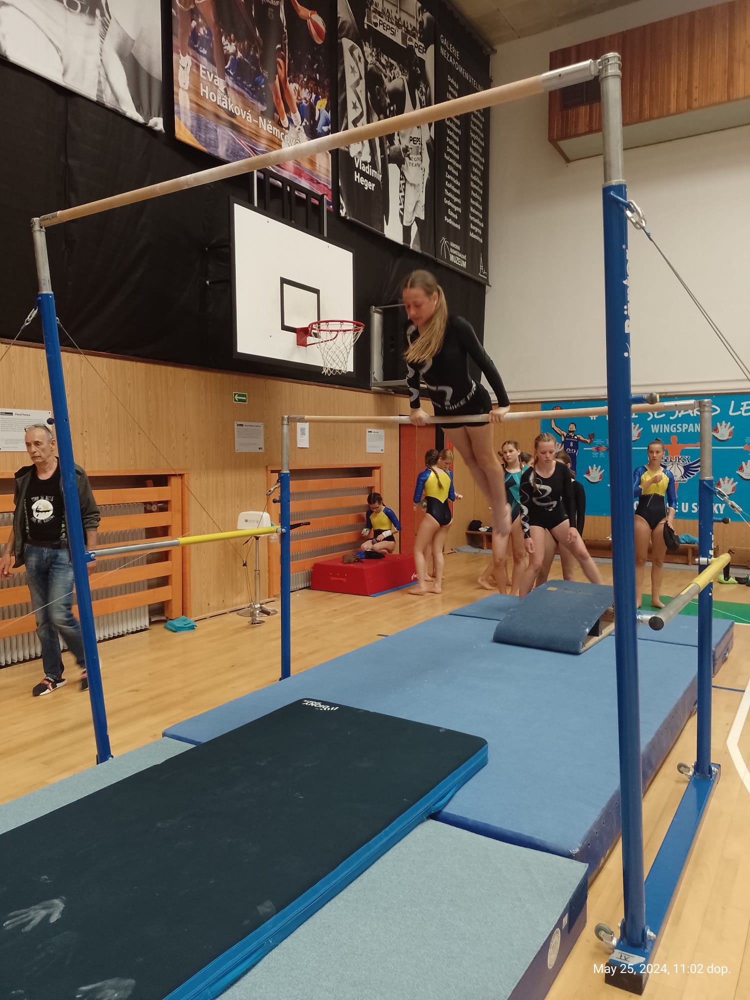 Nejmladší Anetka Nevaeva soutěžila hned po ránu v kateg. VS1B a nejvyšší známku získala právě na bradlech. Vybojovala si pěkné 7. místo.