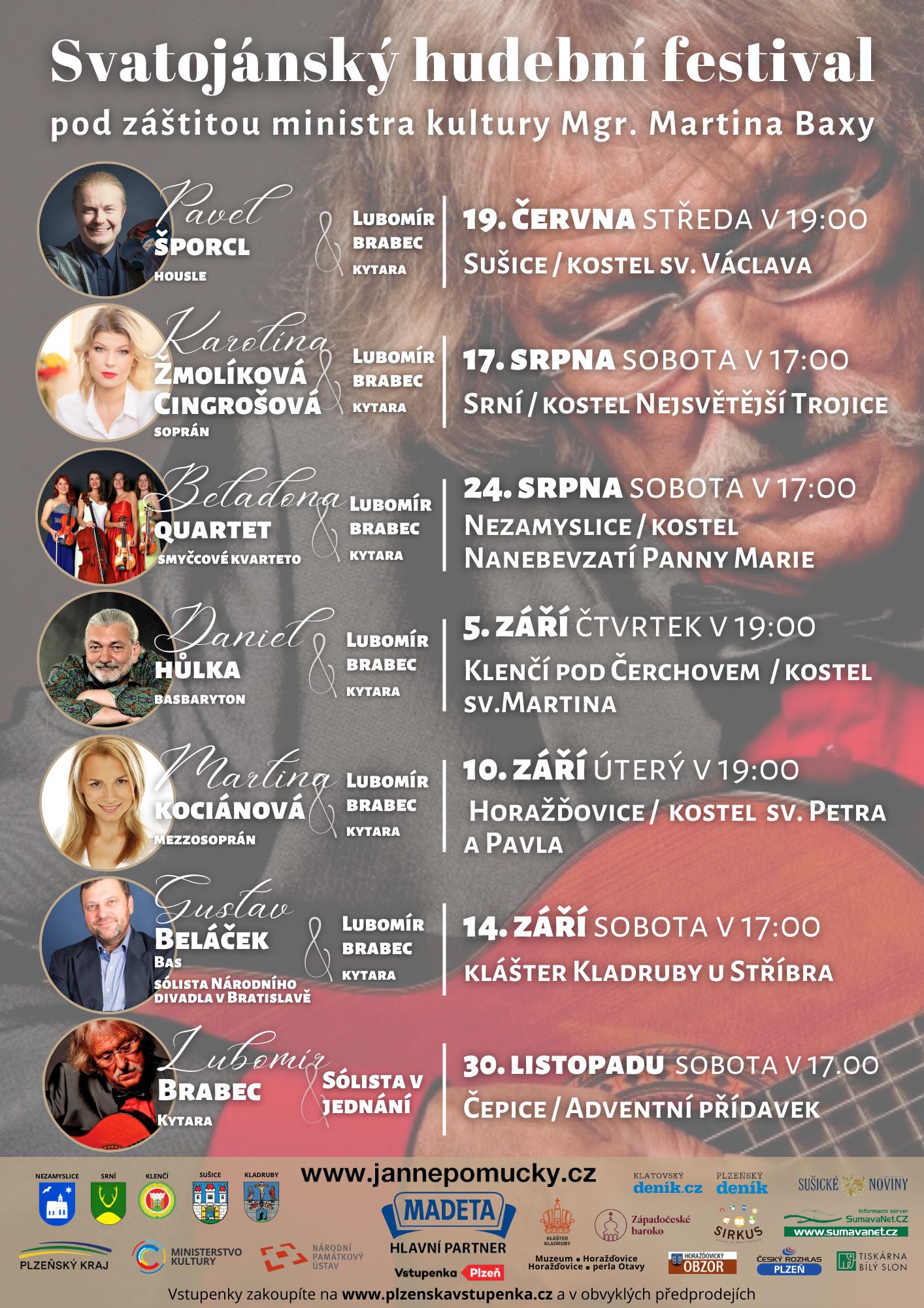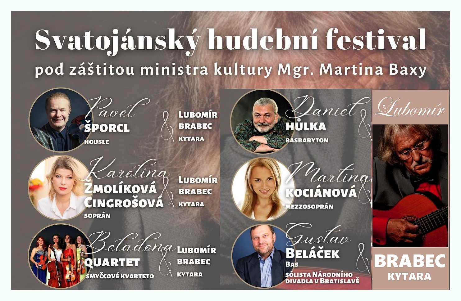 Svatojánský hudební festival se koná pod záštitou ministra kultury Martina Baxy. S kytarovým virtuosem Lubomírem Brabcem vystoupí sedm protagonistů na sedmi festivalových koncertech – šest sólistů zvučných jmen a jedno hudební těleso. Nebudou chybět oblíbení Pavel Šporcl, Kateřina Žmolíková Cingrošová, Daniel Hůlka…