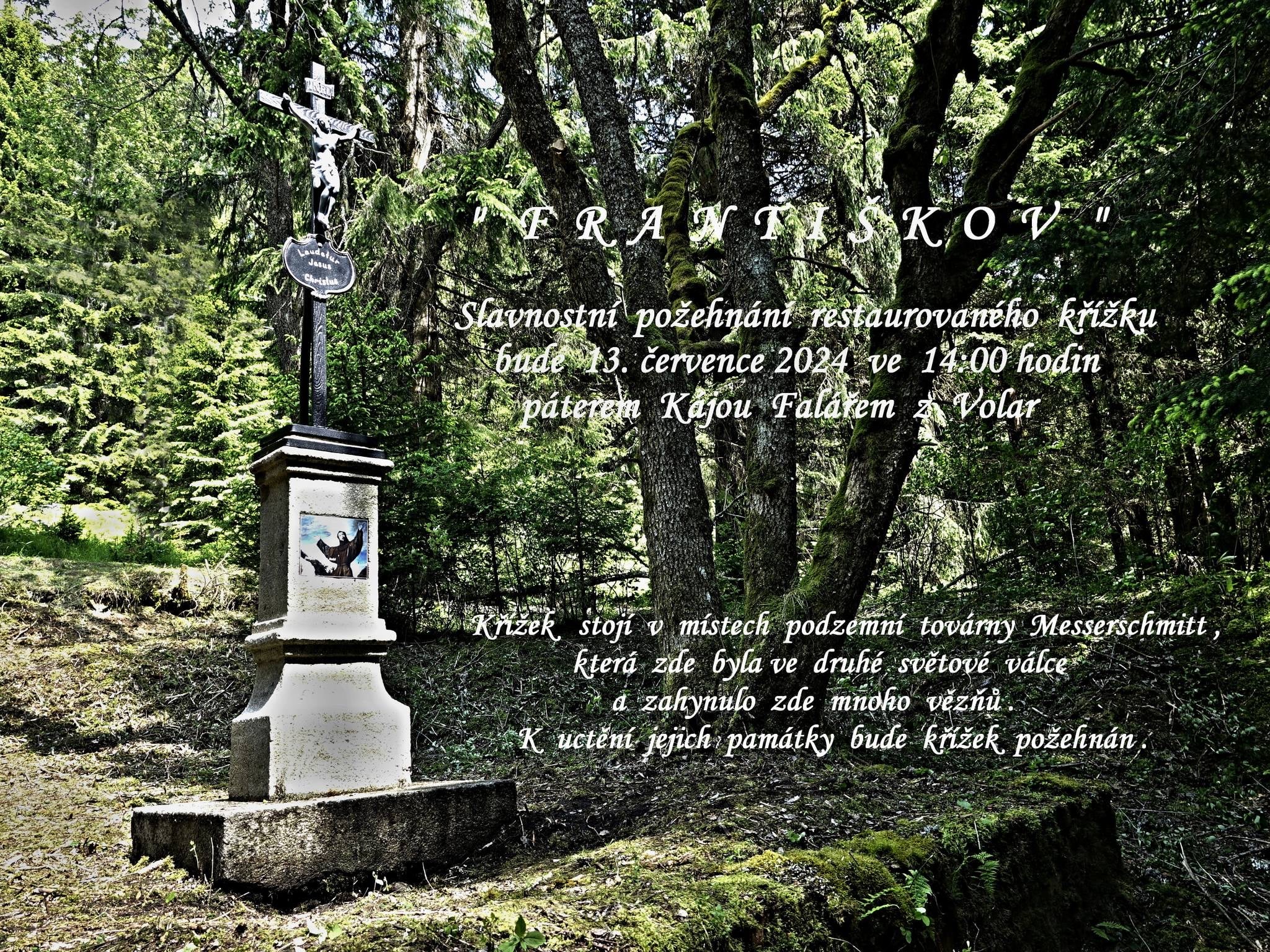 Pozvání na slavnostní požehnání nově zrekonstruovaného 91. křížku ve Františkově v sobotu 13. července 2024 ve 14:00 hodin.