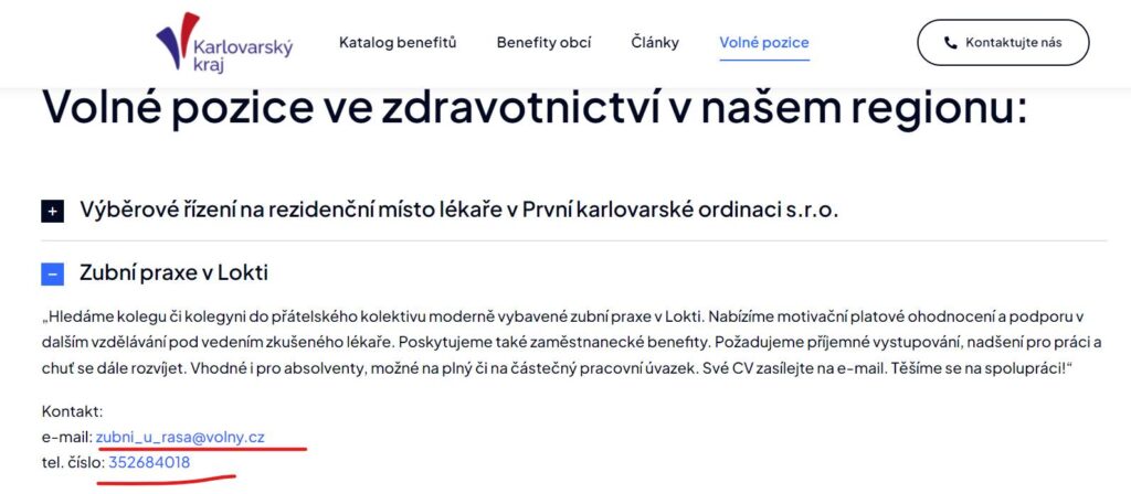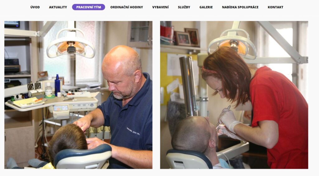 Mé zkoumavé duši to však nedalo a proklikal jsem se na nabídku volných lékařských pozic v tomto vystrkově. Hned mi padla do oka neodolatelná nabídka na místo zubního lékaře v Lokti. Emailová adresa a pevná linka slibují zážitkové dobrodružství nejen pro pacienty. Na dvě kliknutí se dostane na stránky ordinace zřejmě otce a dcery, kteří onu skvostnou ordinaci provozují. Paní doktorka, ač mladého věku, se pěkně pod vlivem tatíka hrbí u křesla před sedícím pacientem a vlasy jí div nepadají pacientovi do huby. Pan doktor otec a držitel osvědčení České stomatologické komory si nebere rukavice ani na focení. Za povšimnutí stojí i pozadí, kde se za starším křeslem skví rodinné fotky a další lapače infekčního aerosolu. Zde https://www.zubarkamensky.cz/galerie/ sama ordinace nabízí ucelenější představu o místě, kde můžete rozjet svou kariéru.