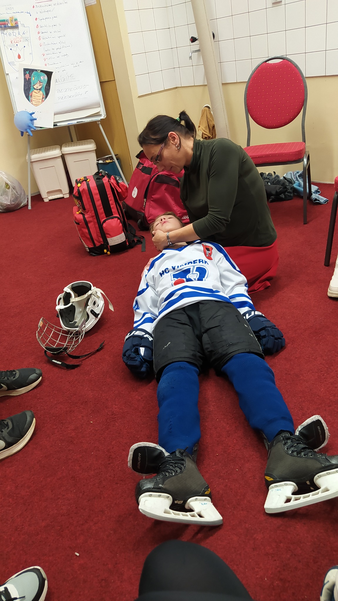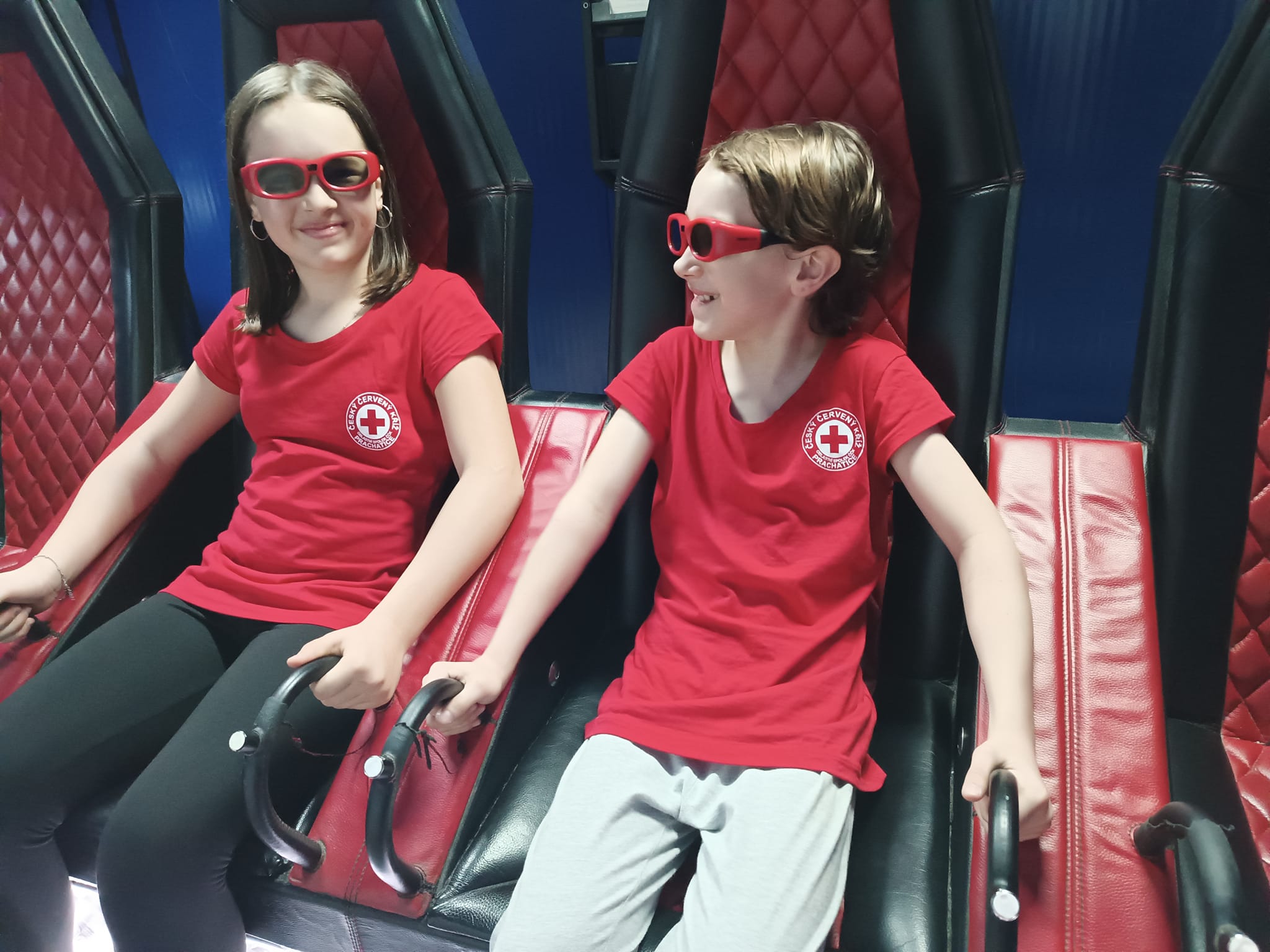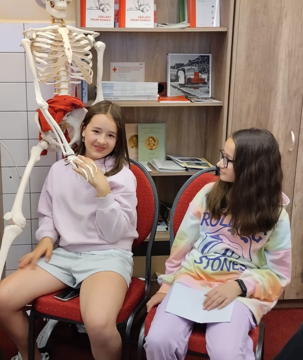 Krom praktického nácviku první pomoci jsme si třeba ukázali, jakou výstroj používají hokejisté a přiblížili si různá rizika při sportu. Uklidili jsme sklad materiální a potravinové pomoci, který využíval ČČK od roku 2022 pro pomoc nejen ukrajinským rodinám. Navštívili jsme sociální službu NZDM Klub I.P a Hospic sv. Jana Nepomuka Neumanna, zapojili se do Sbírky potravin. Připravili jsme ukázky první pomoci v Hopsáriu v Českých Budějovicích a užili si i 5D kino.