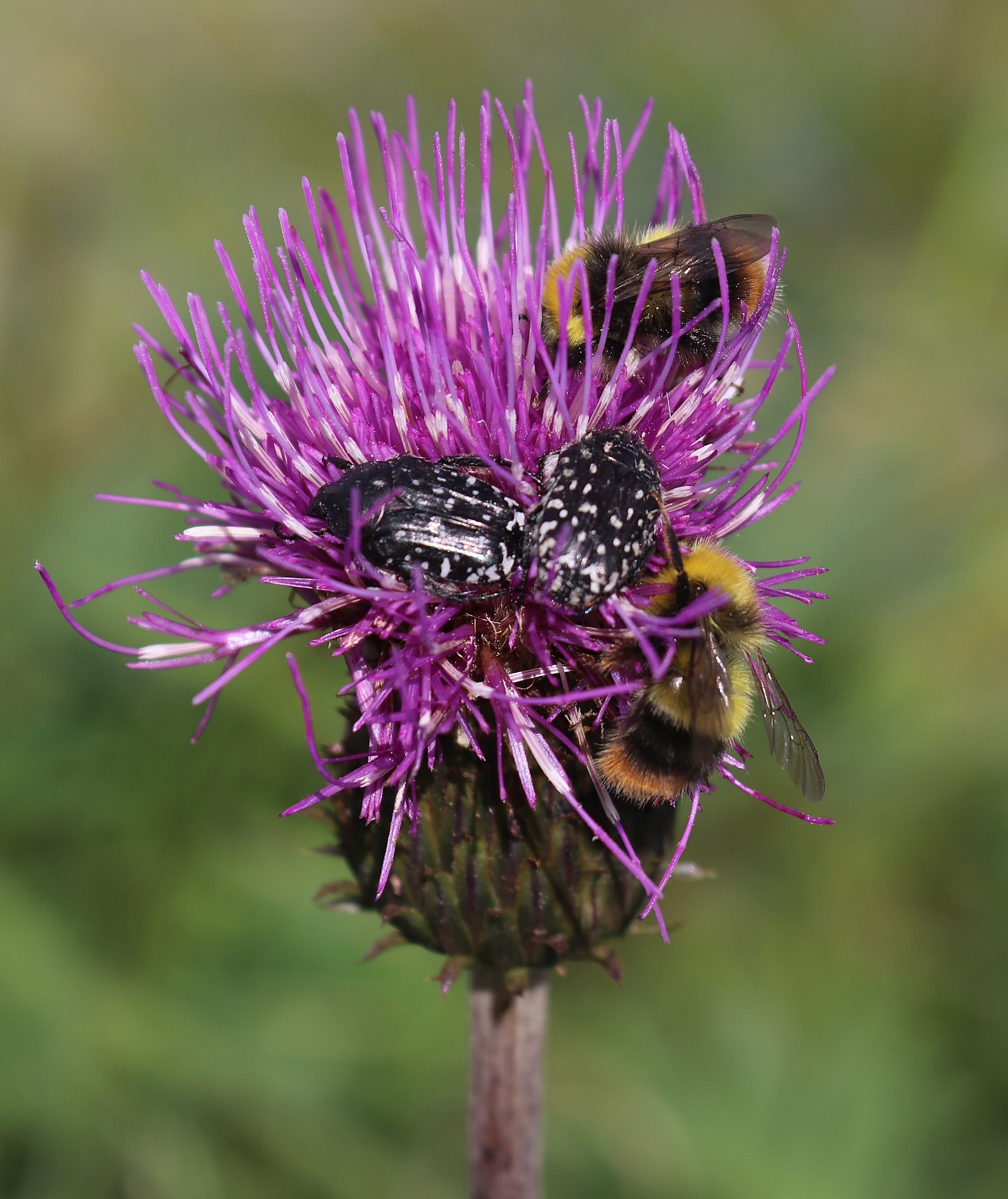 Druhý den odcházím na Malý Polec. V mých stopách kráčejí malé vnučky Emička a Anička. Díváme se, jak si rosnatky okrouhlolisté pochutnávají na mouchách. Anička se ptá, zda jí rosnatky ukousnou prst. „Ten by jim nechutnal,“ říkám. Jdu na všechny čtyři, ruka se mi boří do černé rašeliny, která připomíná nestrávené zbytky rozžvýkaného masa. U stanice míjím fialové huňaté hlavy pcháčů. Tisknou se do nich zlatohlávci černí. Nehýbají se, jsou do kruhu, jako by někdo v jejich středu hrál na hudební nástroj. Vítr cloumá květinami a nachýlené kupy oblaků strhává nad vnitrozemí. Dva čmeláci hledají volné místo v pcháči, tlačí se mezi velká těla zlatohlávků, kteří jim nemíní uhnout ani o píď. A ještě se k čmelákům přidává nějaká pestřenka. Ťuhýk je nevraživý, má patrně špatný den, opět zaútočí na hýla, který poklidně sedí na plotě u krmítka. Hýl poodlétne, nemá zájem se prát s takovým netykavkou. Ťuhýk má přece svoji živočišnou stravu. No jo, tihle dravčí samotáři, myslíš si, že ti tady všechno patří, viď?