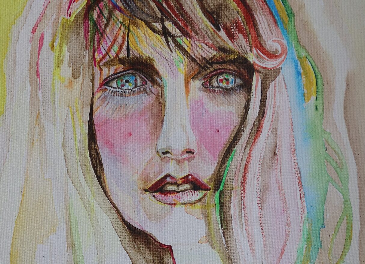 V galerii v Rožmberské se nás sešlo hned pět. Pokaždé jako poprvé obcházím tvé obrazy. Na jednom z nich jsi zachytila ženiny prozřetelné oči. V duhovkách se stýká více barev. Je to žena vidoucí, asi jako Pijačka absinthu od Feliciena Ropse. Dívá se nepřítomně a přitom pozorně, jen kamsi za obzor tohoto světa. Tak je možno napjatě poslouchat očima, tak lze stát na nejzazší mezi očekávání. Začínáš znovu. To není možné, že myslíš na smrt. Vždyť je v tobě tolik života, té mladistvé energie. Zase máš před sebou bílá plátna, která čekají na první tahy štětce. Rozumíš si s barvami jako málokdo.