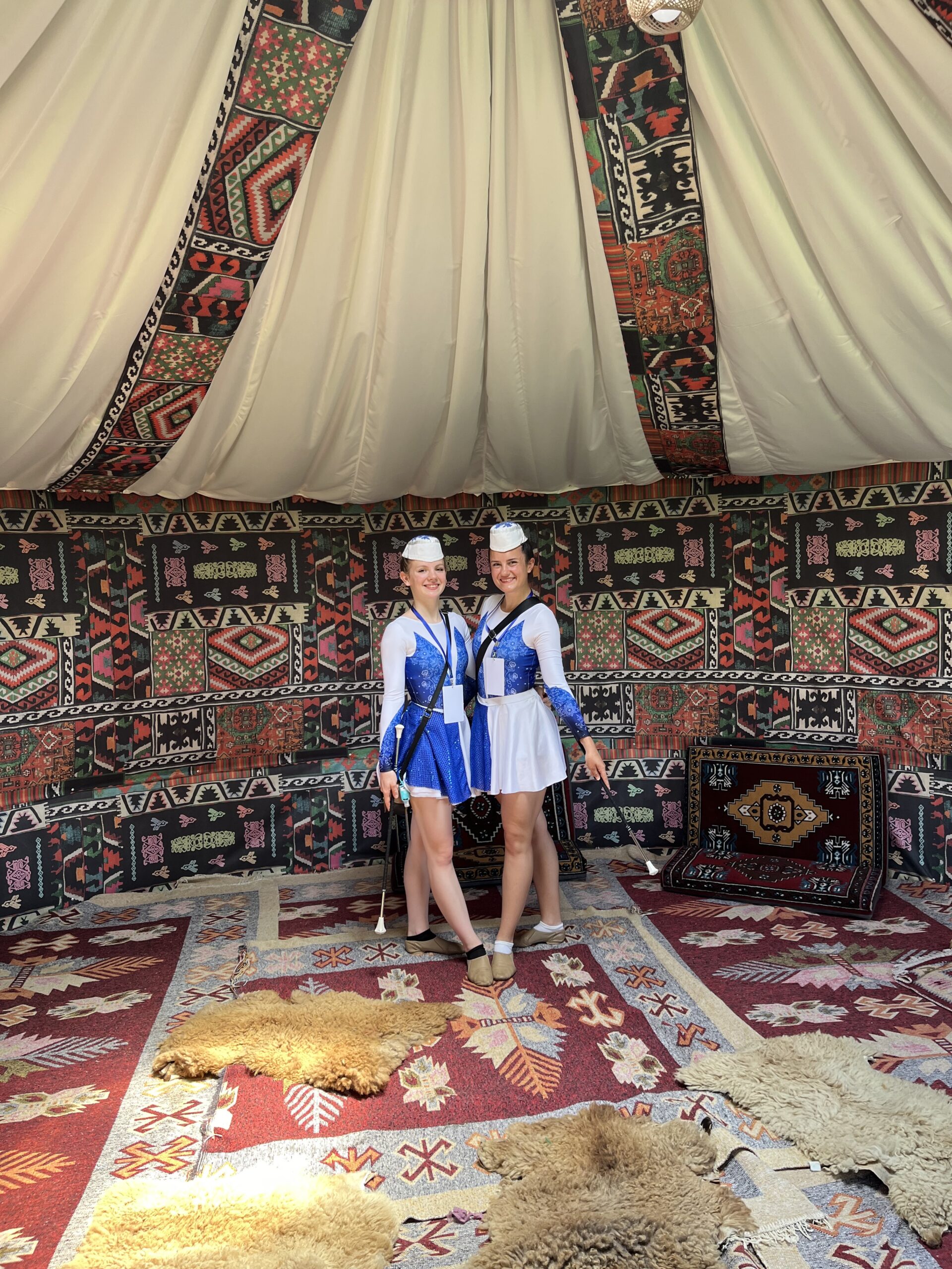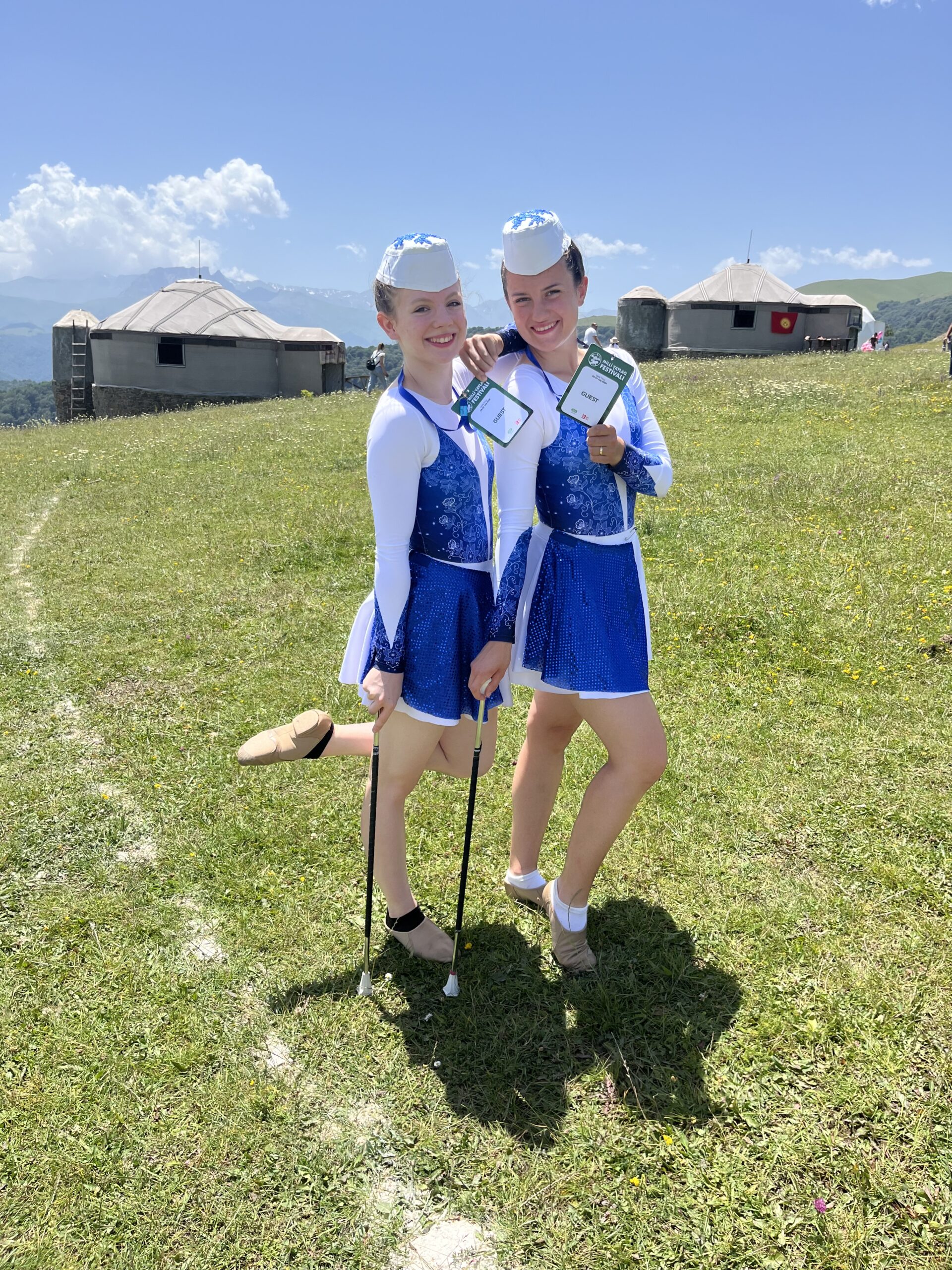 Zuzana Nedvědová a Marie Kukačková z týmu MINIMA Husinec se reprezentace mažoretkového sportu v daleké cizině zhostily velice dobře. Velice působivé bylo jejich flagové duo v programu zahajovacího večera na hudbu Bedřicha Smetany Vltava.