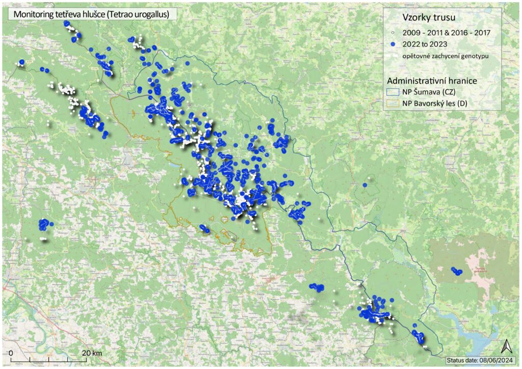 „K vypouštění tetřevů odchovaných v zajetí docházelo už v minulosti. V rámci aktuálního monitoringu v oblasti Boubína registrujeme geneticky identifikovaného pouze jednoho jedince tetřeva hlušce. Ten může pocházet z umělého odchovu. V rámci budoucího monitoringu se na tuto věc musíme zaměřit, abychom co nejpřesněji zjistili vliv těchto výsadků na celkovou populaci,“ doplňuje Pavel Hubený.