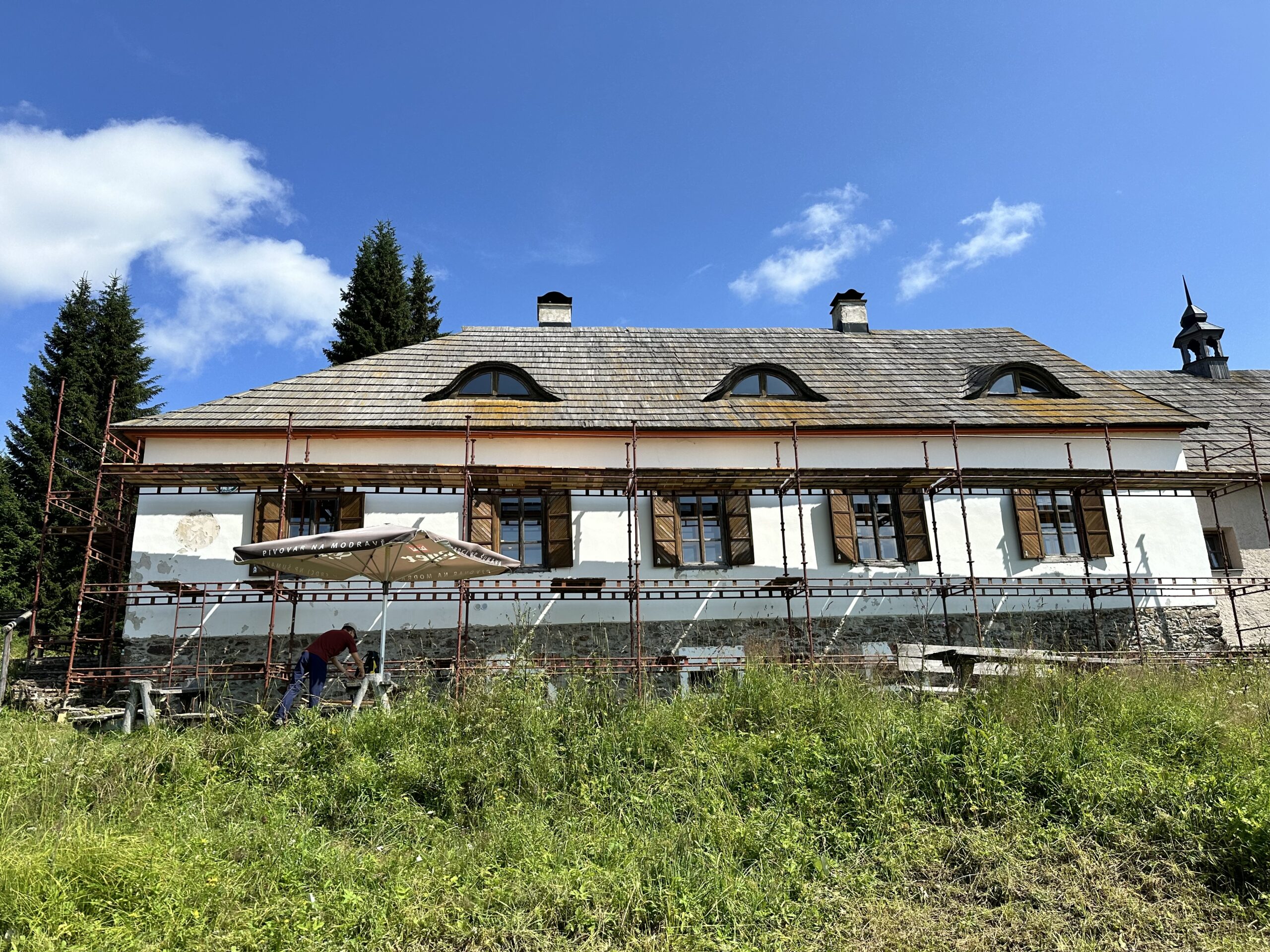 Budova hájovny Březník dostane novou střešní krytinu. Ta současná, ze smrkového šindele, již dosloužila. Na konci léta se navíc bude upravovat střecha infocentra na Poledníku.