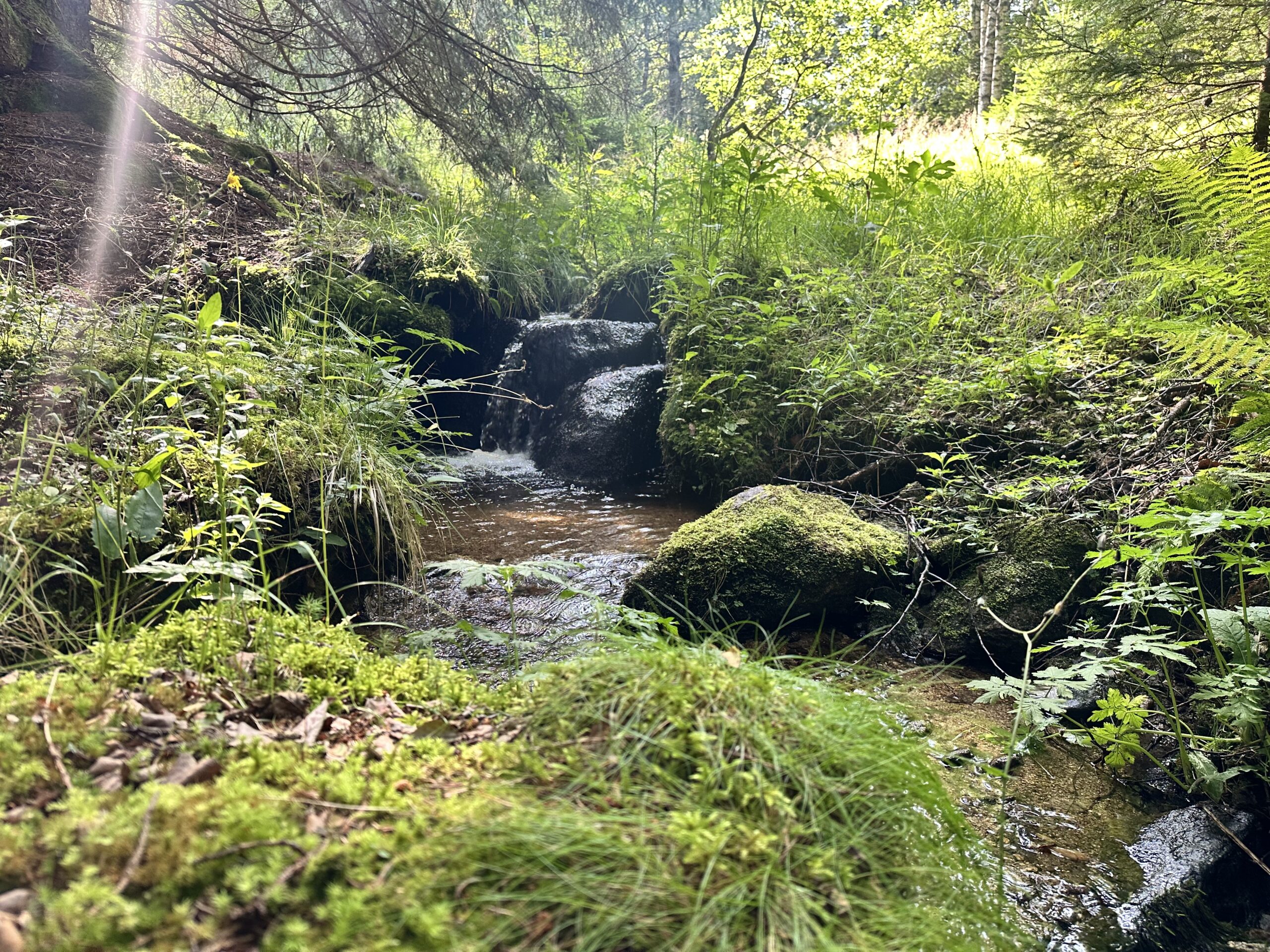 překonání potoka bez lávky nebo výhledy na typickou šumavskou louku,“