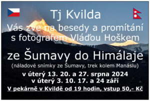Pozvánka na promítání s Vláďou Hoškem na Kvildě na téma : Ze Šumavy do Himálaje