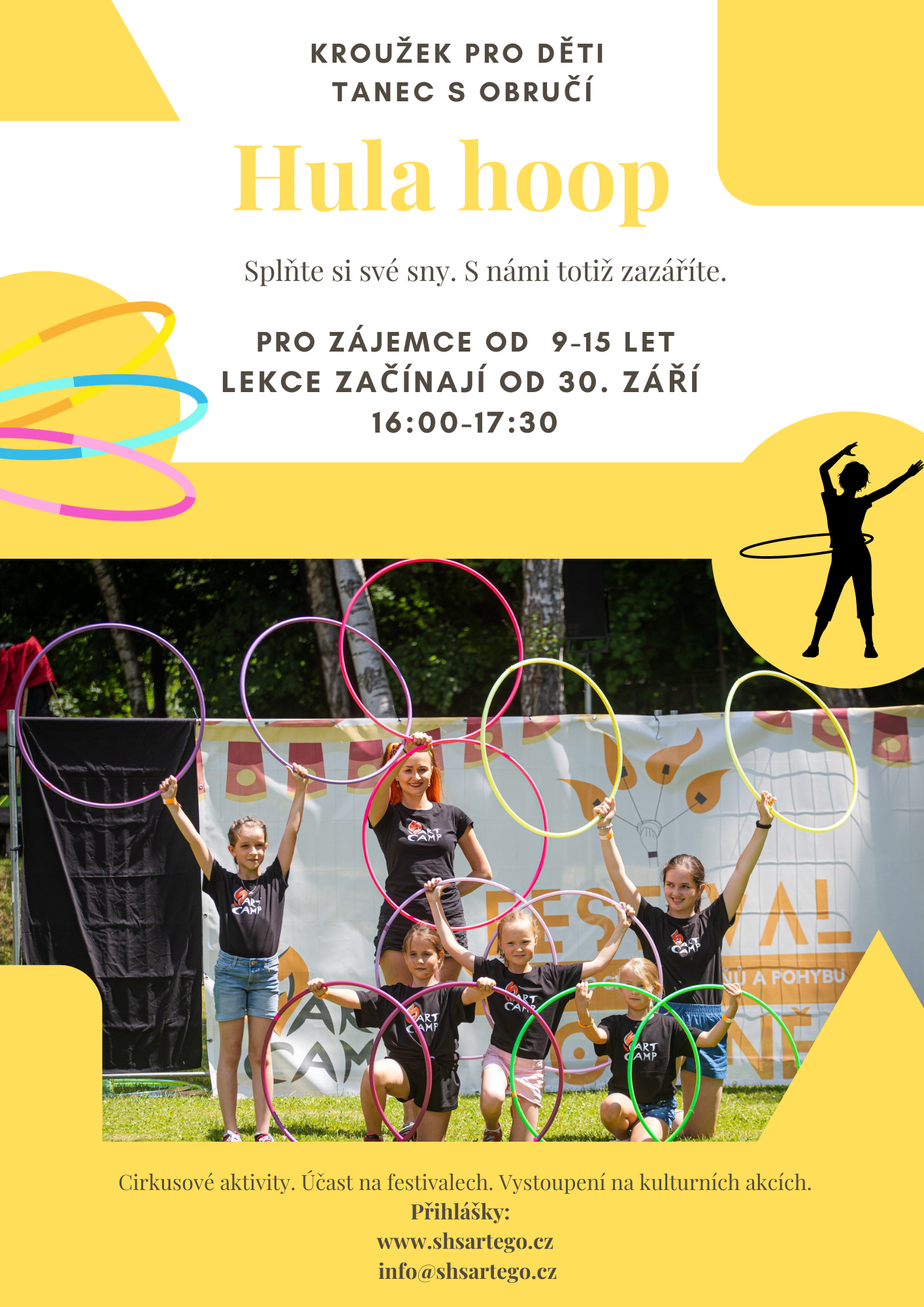 A čtvrtky bude hula hoop pro všechny starší 15 let a výše. Hooping je skvělý na uvolnění těla, ženské energie. S obručí se protáhneš, ale si i zatančíš a naučíš se nejenom kroužit na pase, ale také točit na rukou.