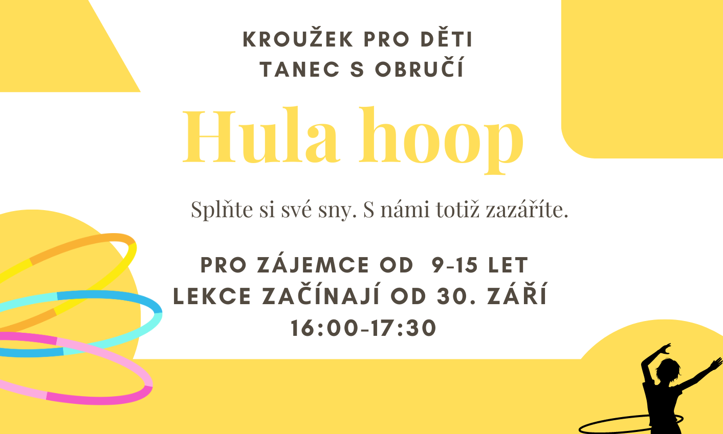 A čtvrtky bude hula hoop pro všechny starší 15 let a výše. Hooping je skvělý na uvolnění těla, ženské energie. S obručí se protáhneš, ale si i zatančíš a naučíš se nejenom kroužit na pase, ale také točit na rukou.