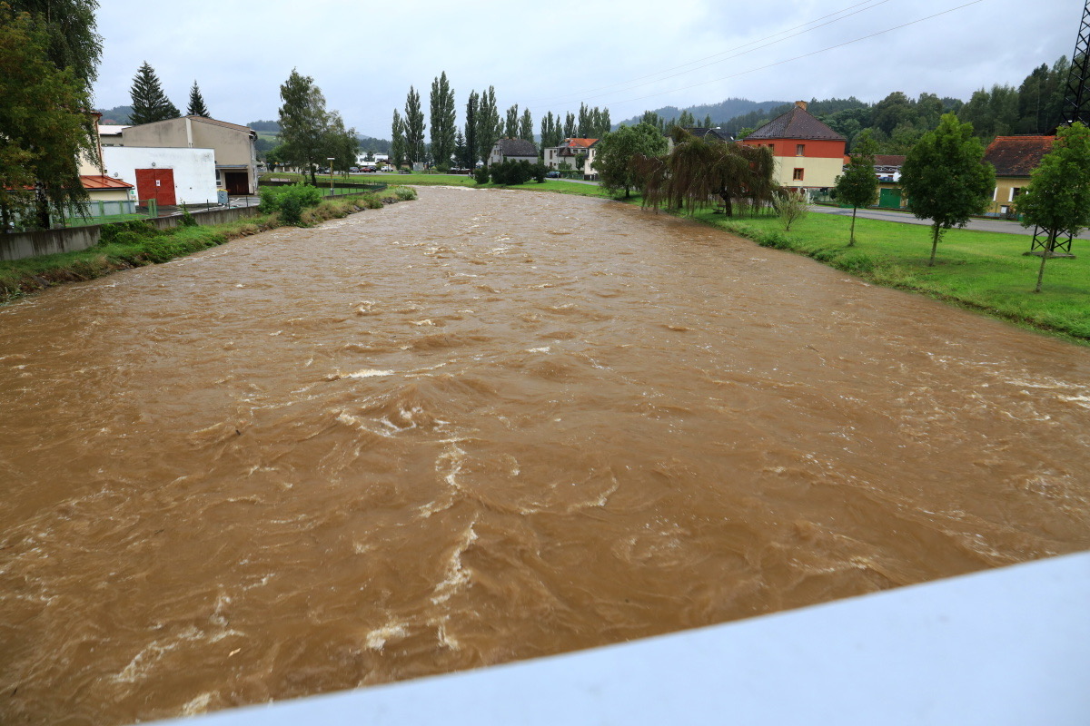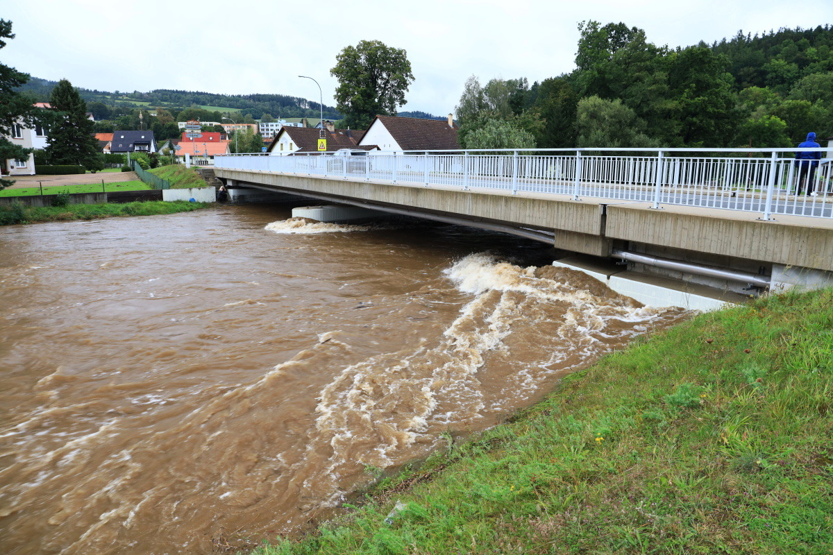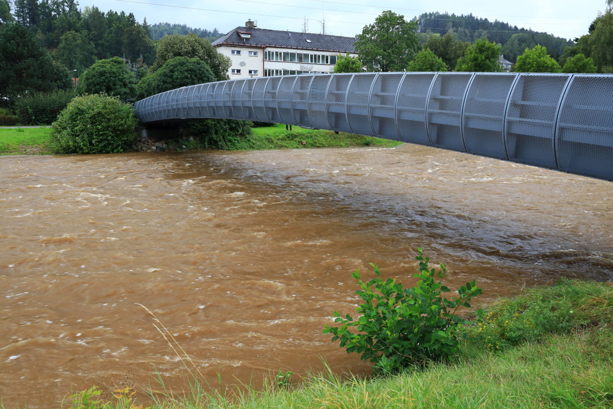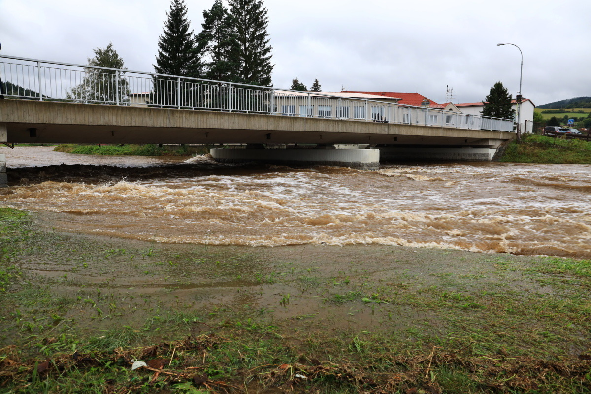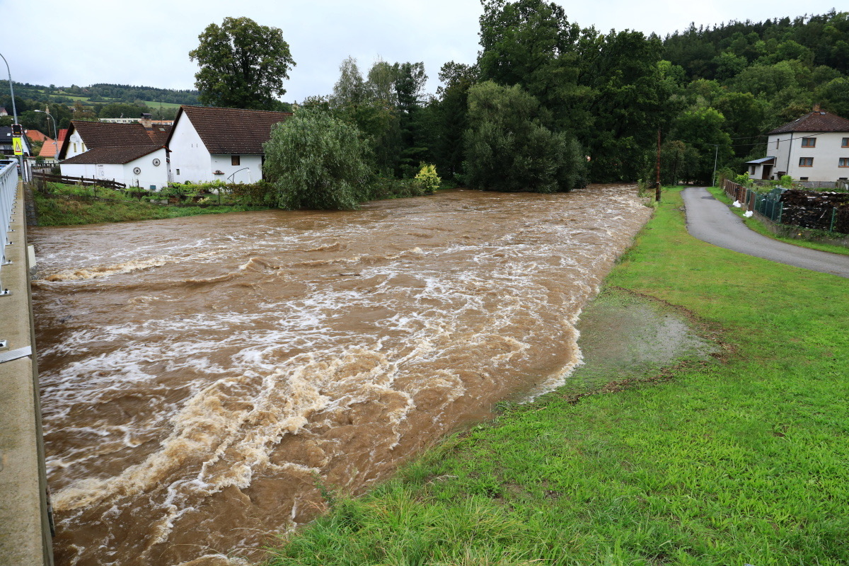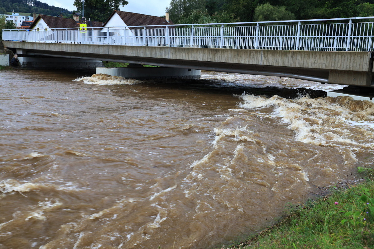 Rozvodněná Volyňka dnes v sobotu 14.9.2024 ve 14.30 hodin. Kulminace proběhla, hladina klesá, snad nebude zase pršet. Zatím v pohodě.
