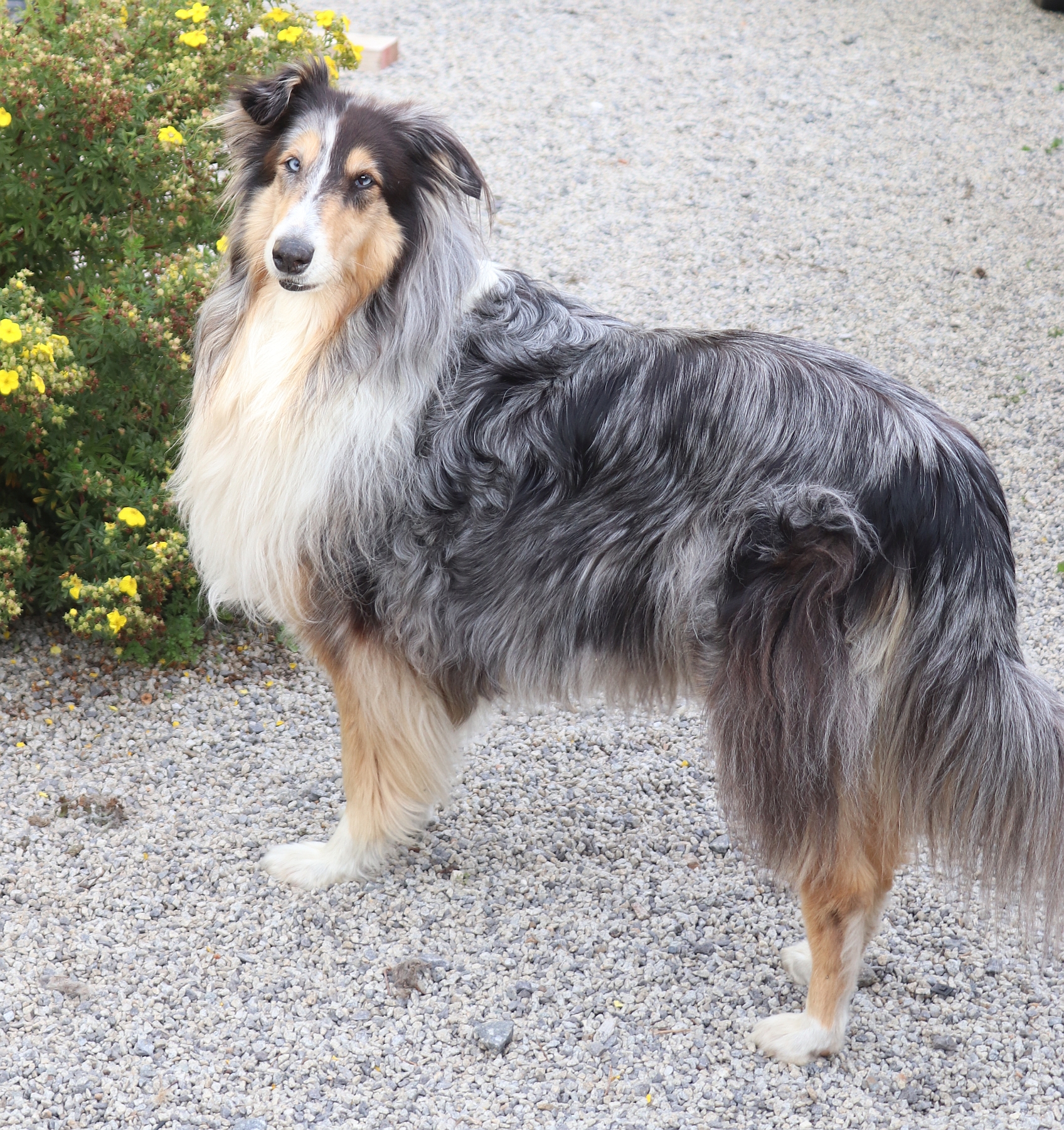 Chodí kolem nás dvě kolie vyšlechtěné z barzoje. Renata jim říká hafky. Sice vypadají jako kolie, ale charakter mají z barzoje. Větší je Nia, Renata si ji pojmenovala ještě Fifi. Ale nejlíp prý slyší na hýneke, když volá na slepičky. Nia má hluboké světle modré oči. Ráda běhá pro míček, který jí občas hodím, když si chci odpočinout od práce. Druhá hafka se jmenuje Enya a té říká Renata Enýsek – tenýsek podle tenisáků, které už spolu poztráceli. Když zase sedíme na verandě u stolku, pijeme čaj a pokuřujeme, vydává se slepička na výzvědy do chalupy. Nedávno přesazovala Renata kytky na kompostu a byla tam s ní i jedna ze slepiček. Najednou odkudsi přiletěl jestřáb, snesl se tiše nad ni, slípka jí prolétla mezi nohama a zůstala ve křoví těsně vedle ní a Renata najednou koukala jestřábovi přímo do očí. Ten to těsně nad zemí vybral a odletěl. A tak jsou slepičky na divoké Šumavě v neustálém ohrožení.
