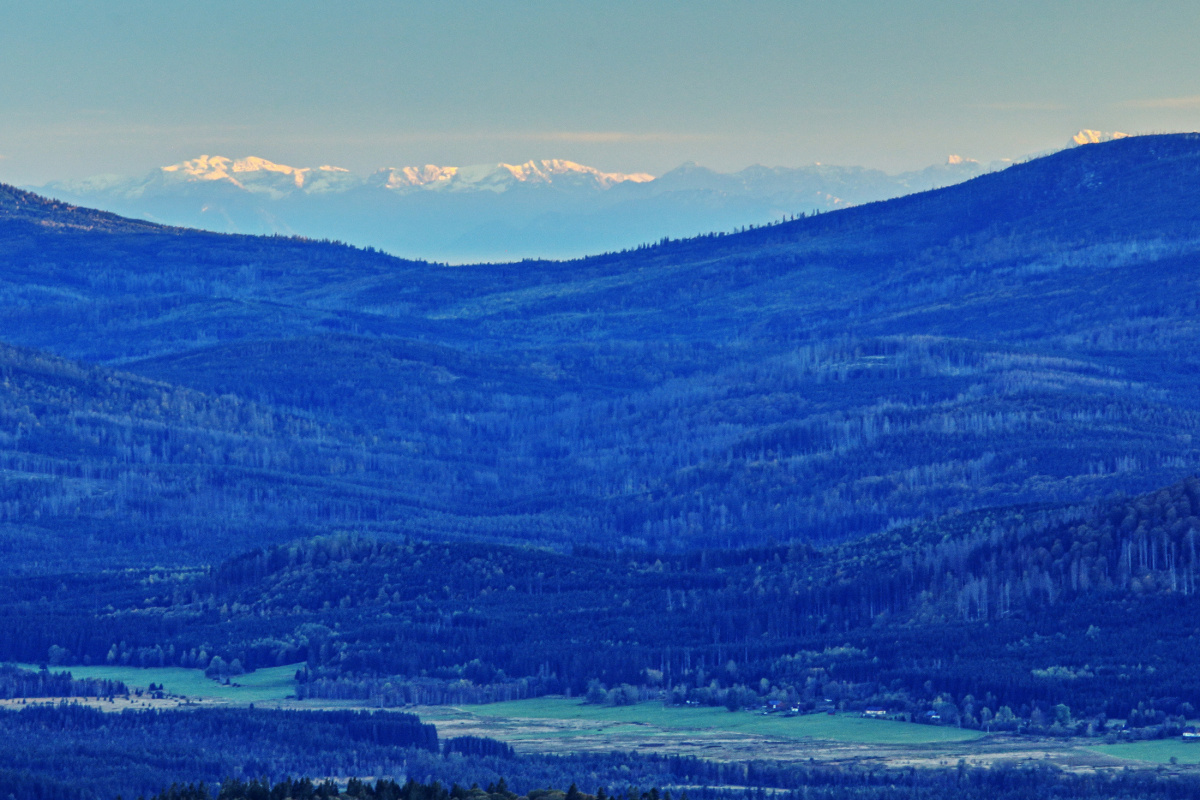 V pondělí před půlnocí jsem se vrátil z vrcholu Boubína. Na západě byly pěkné mraky, dohlédl jsem nejen na Plechý, Poledník, Javor, Jezerní horu a Ostrý, ale na jihu se před svítáním objevily i Alpy.