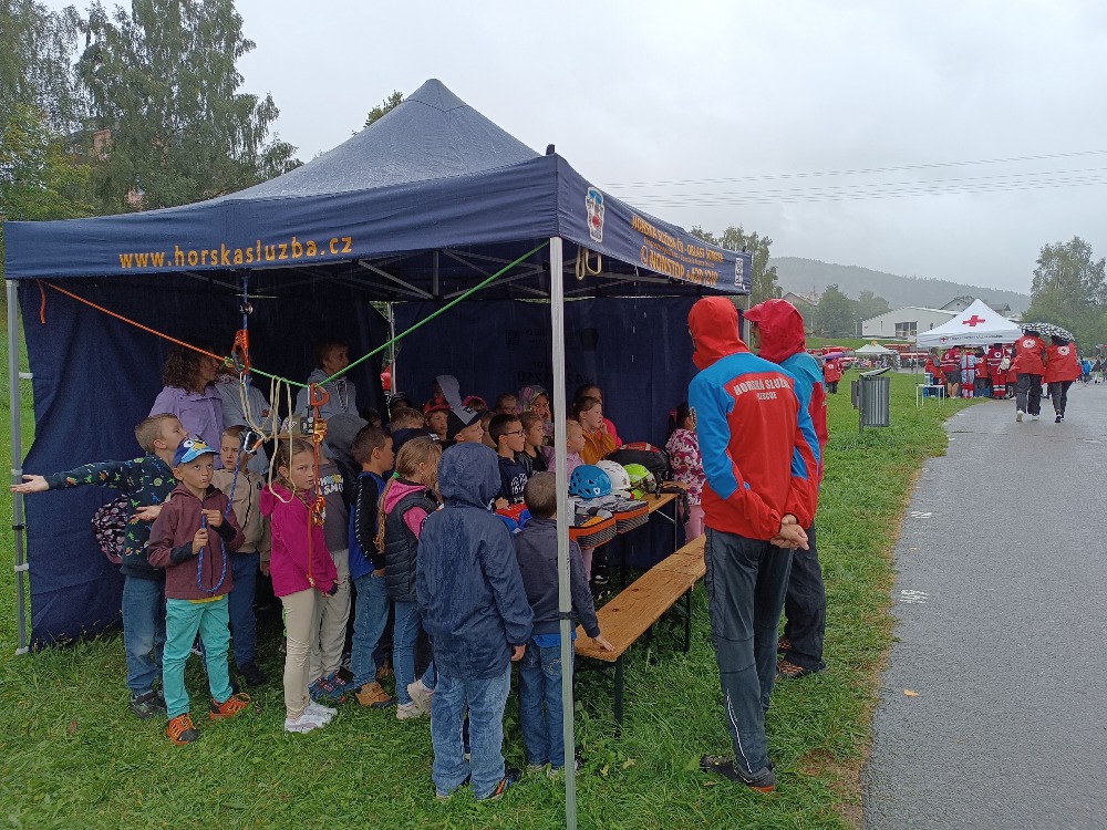 Horská služba ČR a její pracovníci pak příchozí seznámili se zásadami bezpečného pohybu na horách, transportem zraněných z náročného terénu nebo s postupy první pomoci v horském prostředí.