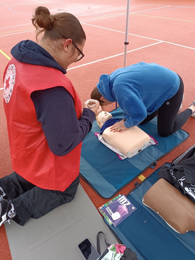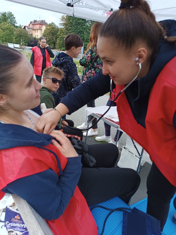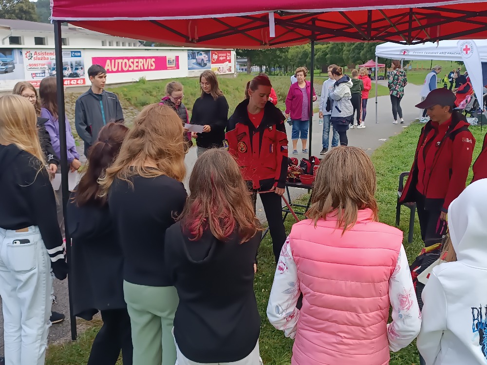 Dobrovolníci ČČK, mezi nimi i studenti SZŠ České Budějovice, žáci prachatických ZŠ Vodňanská, Národní a Zlatá stezka 240, vimperských ZŠ Smetanova, Vimperk, ZŠ Šumavské Hoštice a ZŠ Stachy seznámili příchozí s  postupy první pomoci u zástavy a s využitím automatického externího defibrilátoru při resuscitaci, s ošetřením krvácejících poranění, odřenin nebo řezných ran.