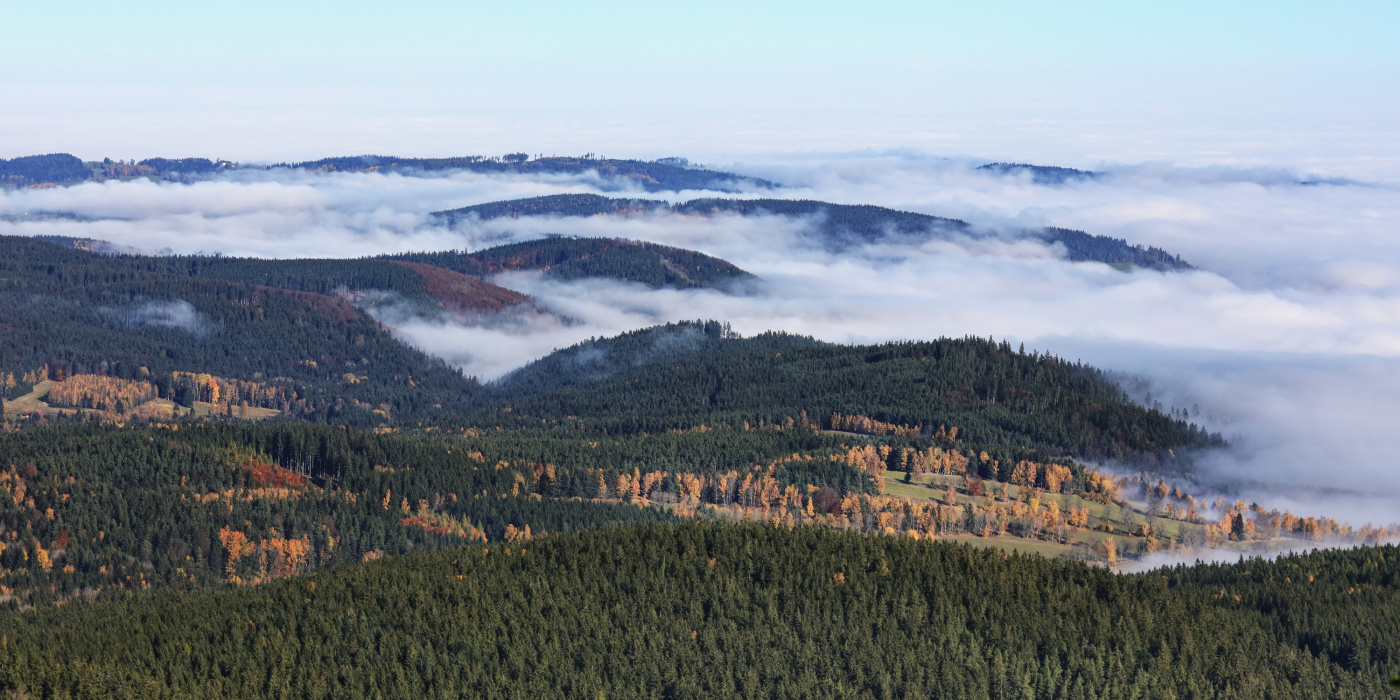 Pátek 25.10. : Inverze na Šumavě opět pokračuje, u nás dole byla po celý den zase mlha a chladno, ale na kopečkách bylo opět super počasí na kraťasy. Šel jsem na Bobík 1264 m a zase se podařilo nafotit řadu zajímavých snímků. U Buku se válely mlhy při pohledu na Boubín.