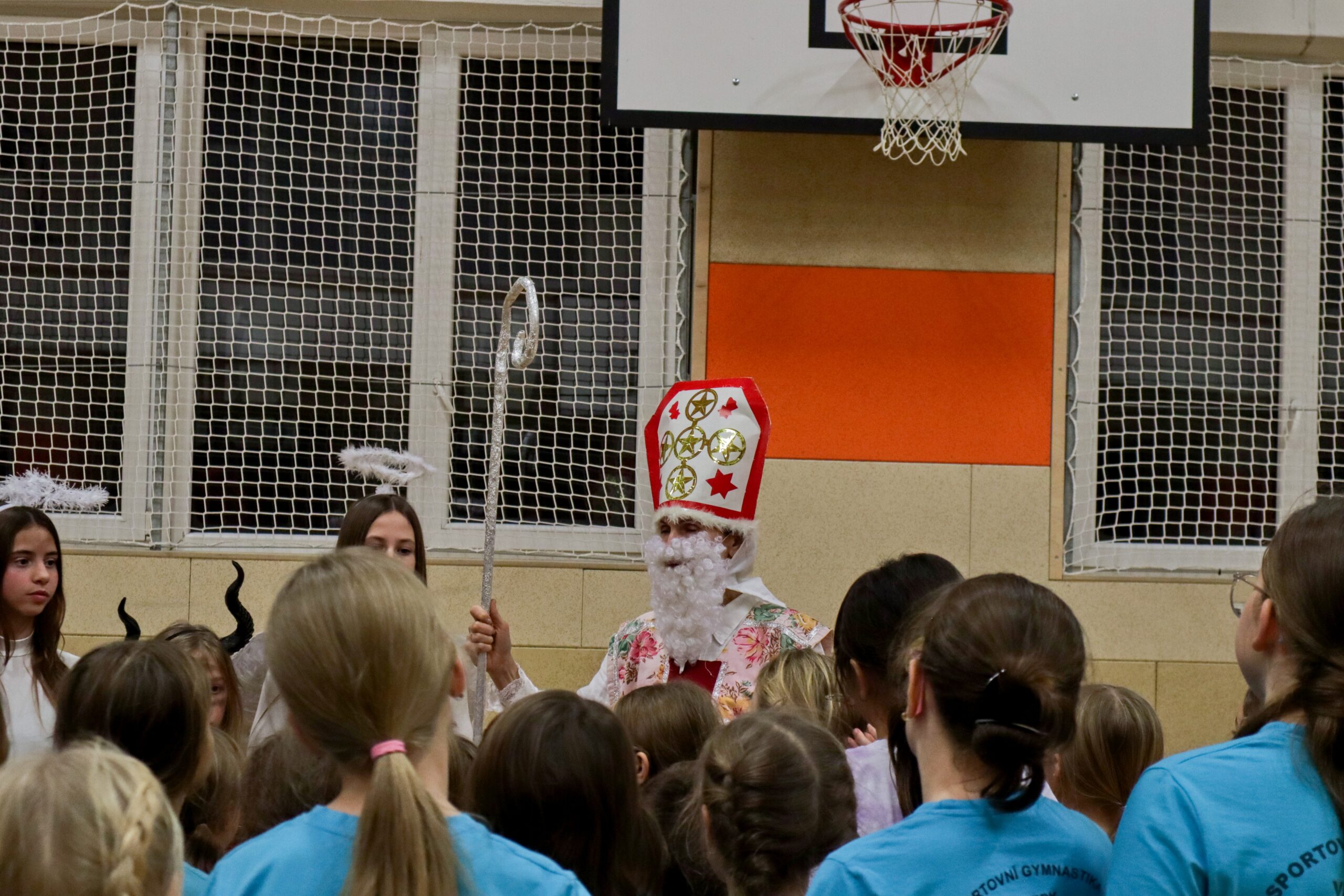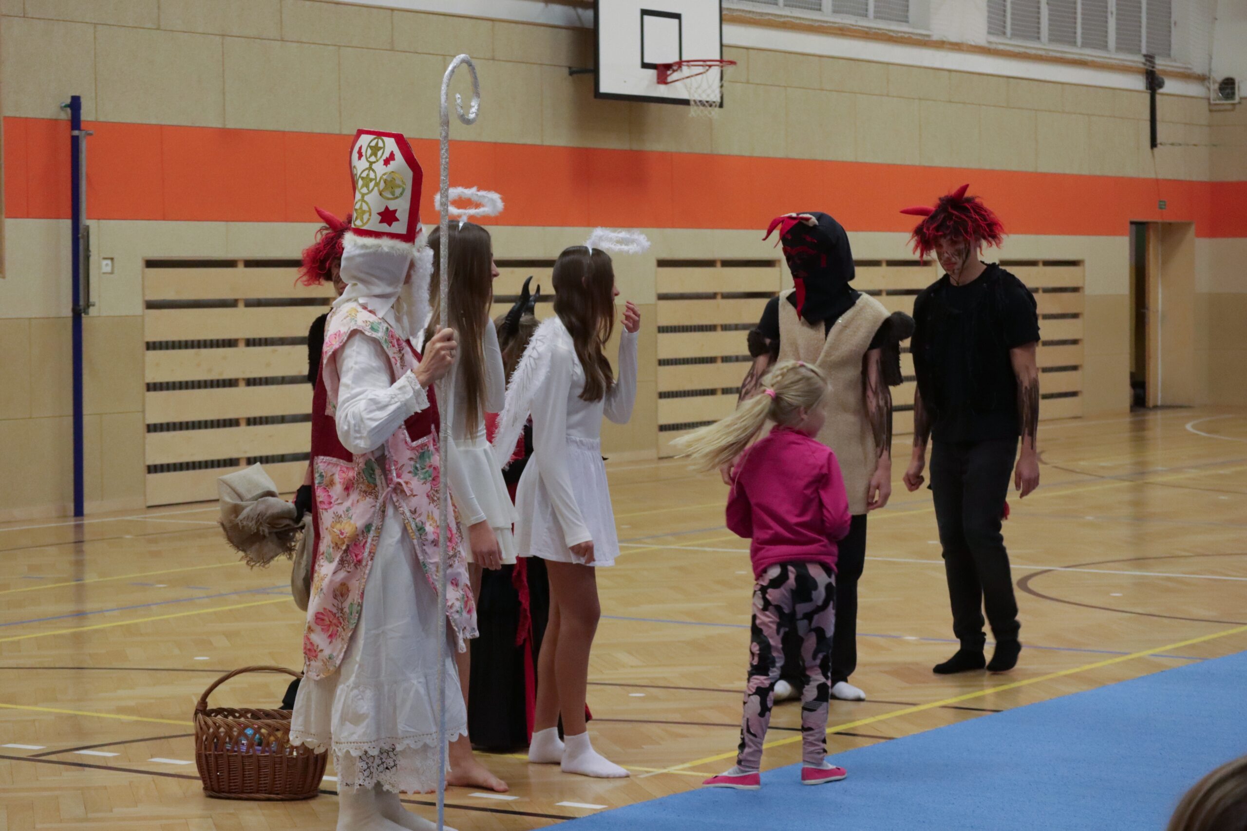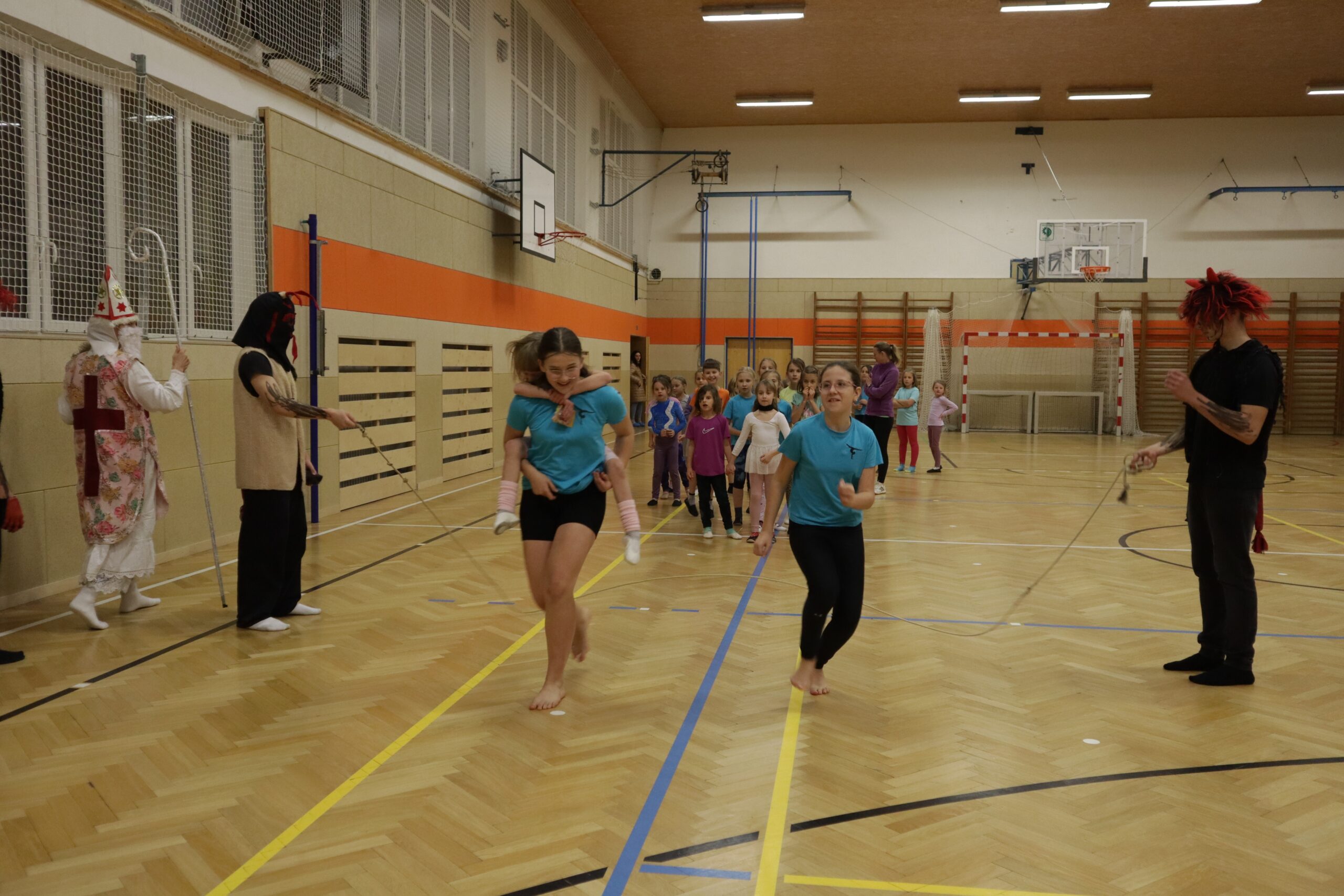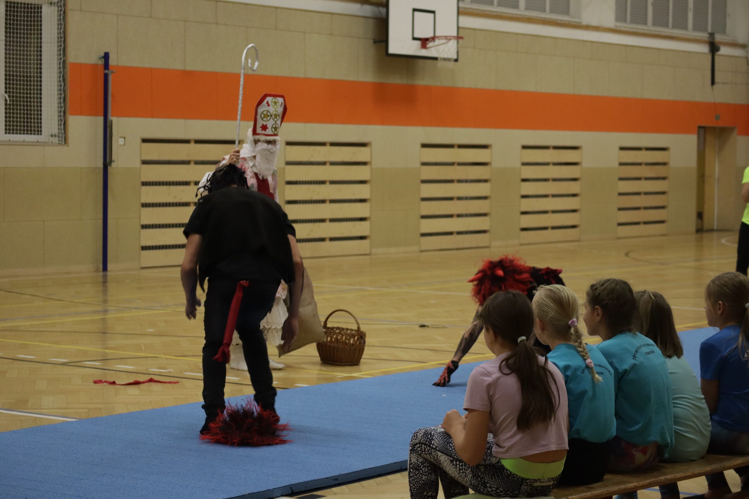 Na kroužky DDM sportovní gymnastiky nečekaně, trochu v předstihu přišel Mikuláš se svou družinou. Ne všechny dětičky jsou pořád hodné. Zrovna na posledním tréninku některé trošku zlobily a trenérka to na ně čertům prozradila. Čerti neváhali a hned ty zlobidla chtěli pochytat. Kdo ví, kde by skončily, kdyby Mikuláš nezakročil.