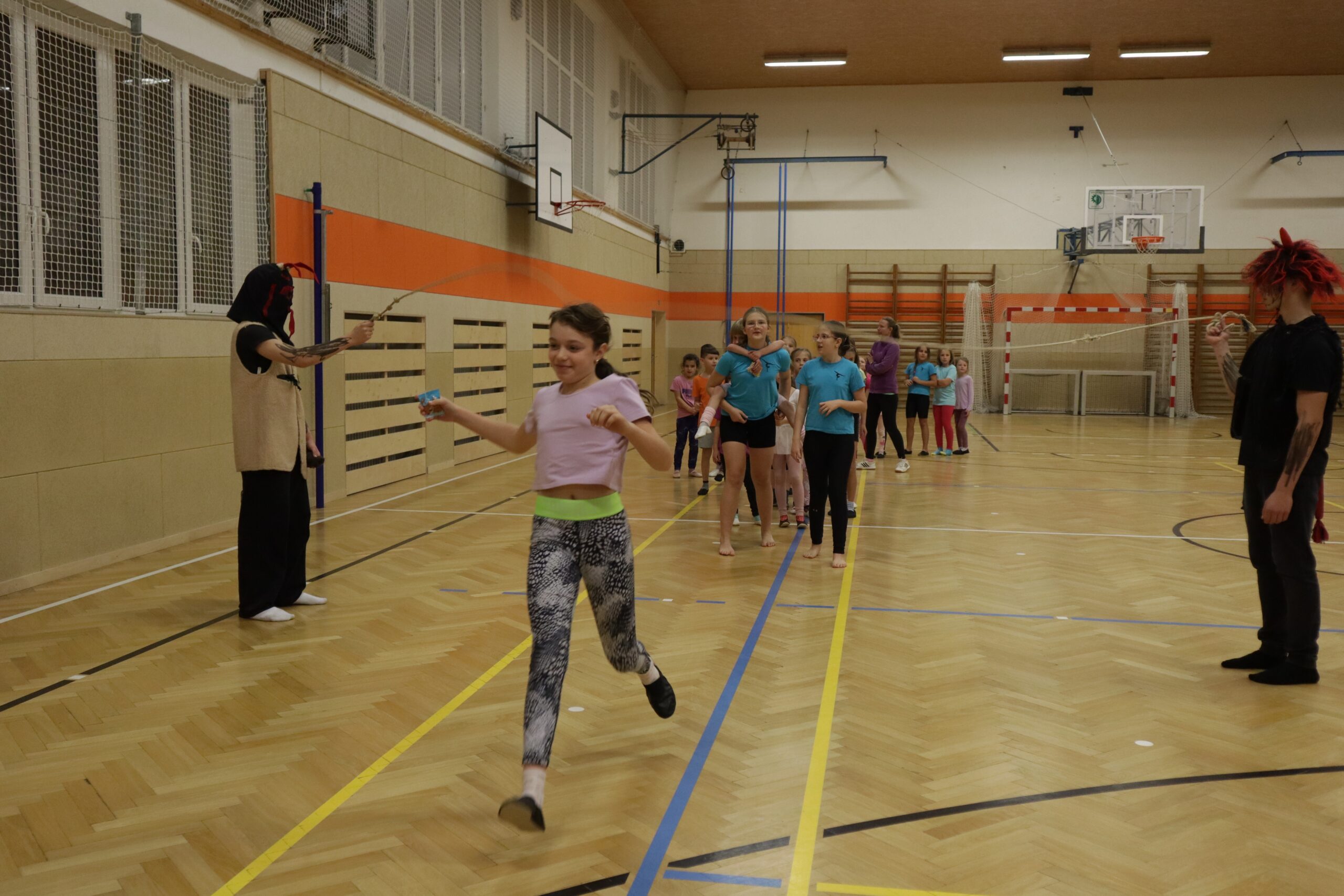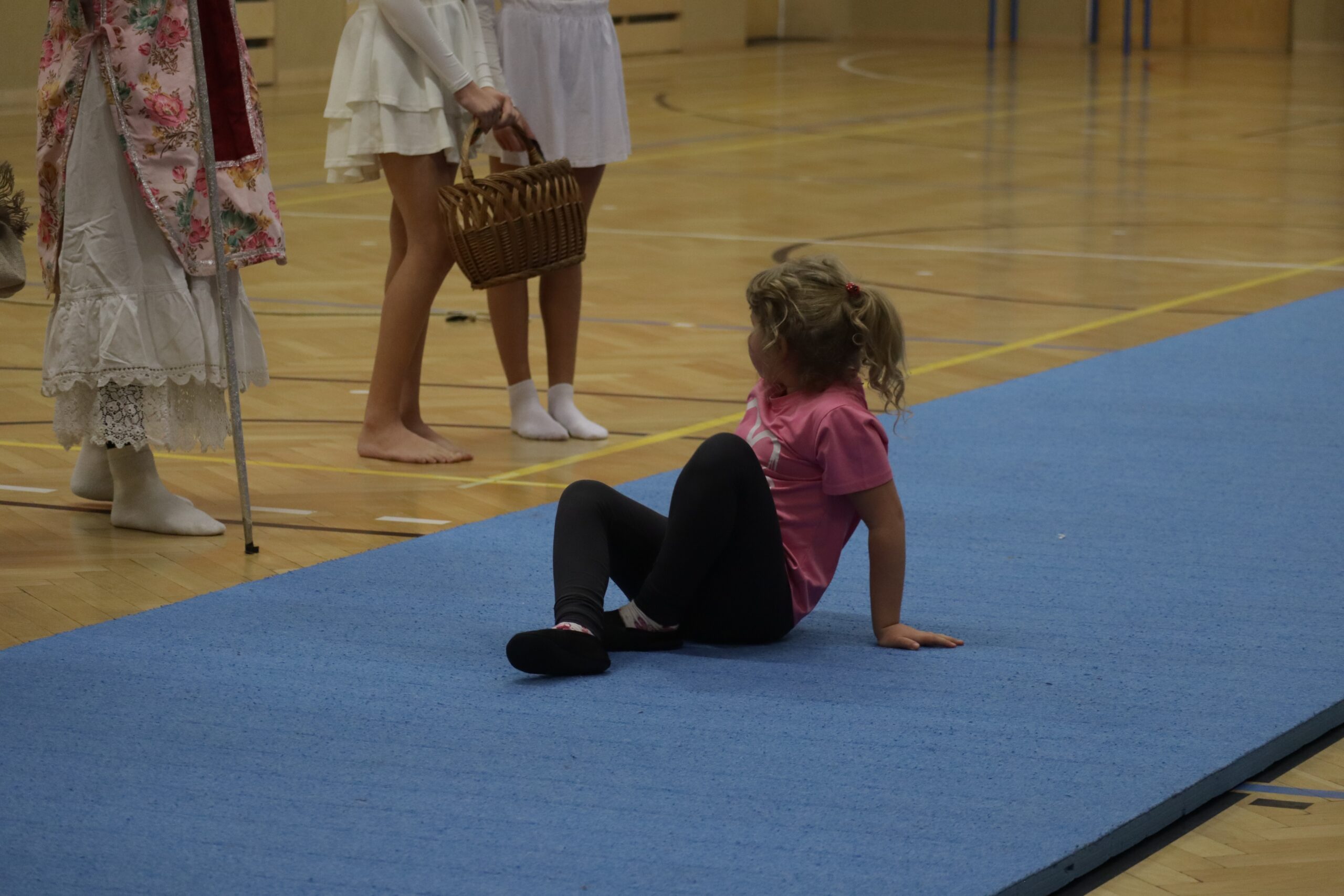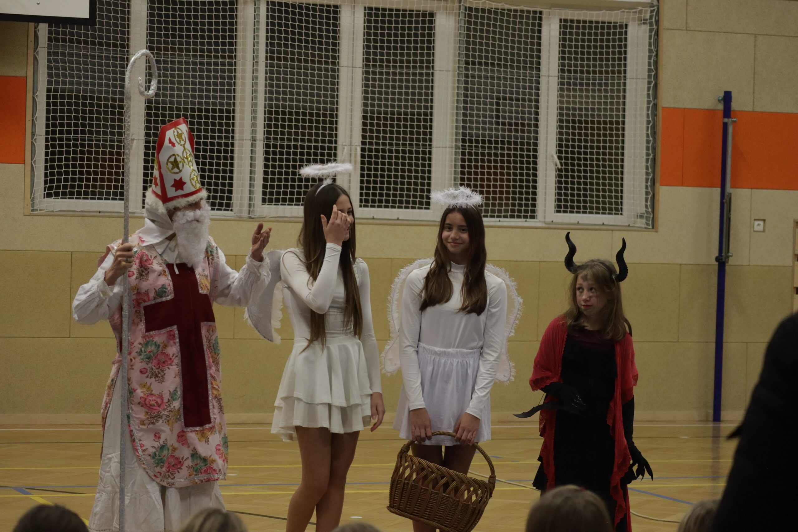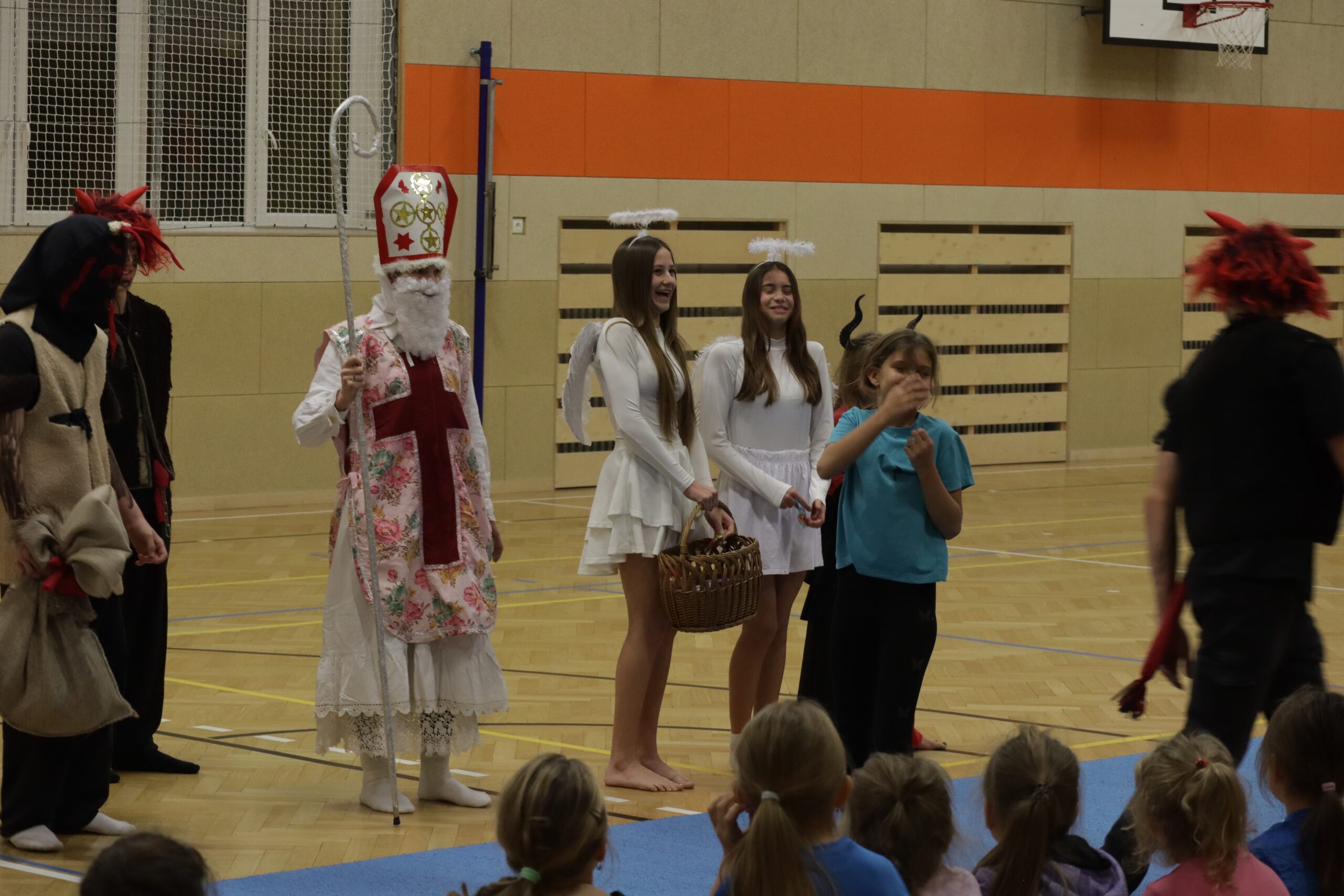 Na kroužky DDM sportovní gymnastiky nečekaně, trochu v předstihu přišel Mikuláš se svou družinou. Ne všechny dětičky jsou pořád hodné. Zrovna na posledním tréninku některé trošku zlobily a trenérka to na ně čertům prozradila. Čerti neváhali a hned ty zlobidla chtěli pochytat. Kdo ví, kde by skončily, kdyby Mikuláš nezakročil.