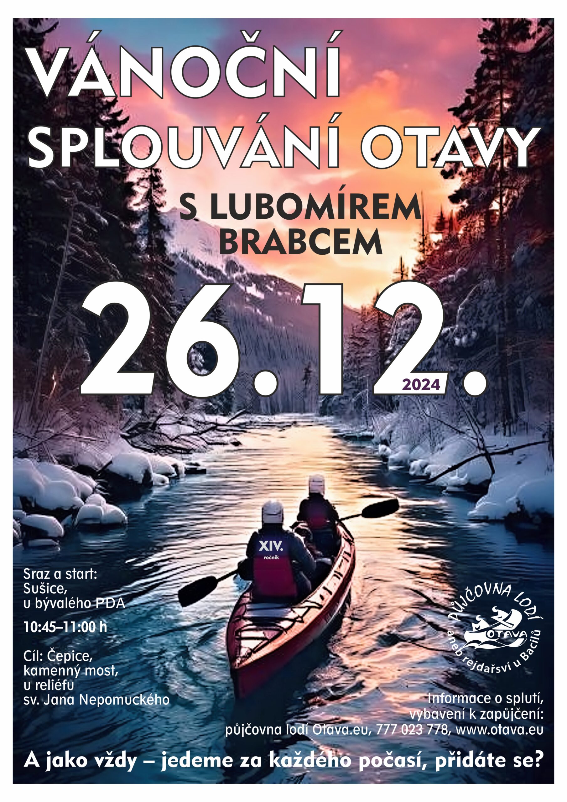 Pozvánka na letos již 14. ročník Vánočního splouvání Otavy s kytarovým virtuosem Lubomírem